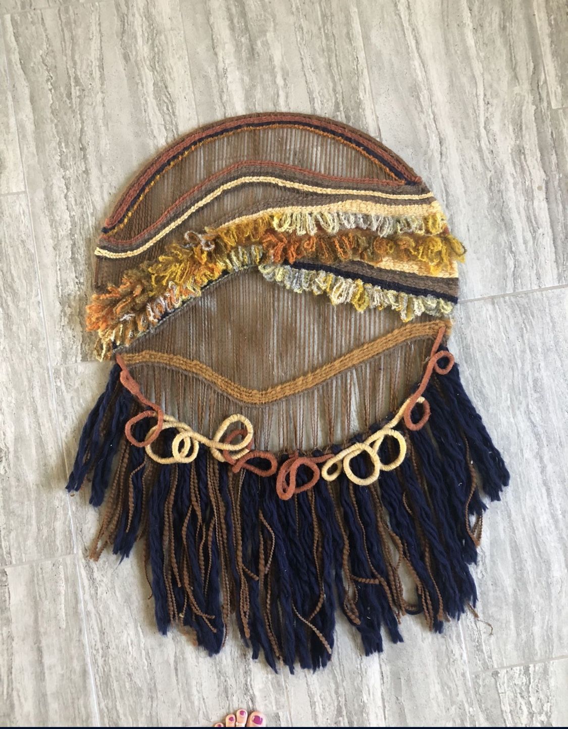 Handmade woven yarn dream catcher / wall art from the 1970’s. Serious California hippie vibes. 3 feet in diameter. Great southwest color scheme.