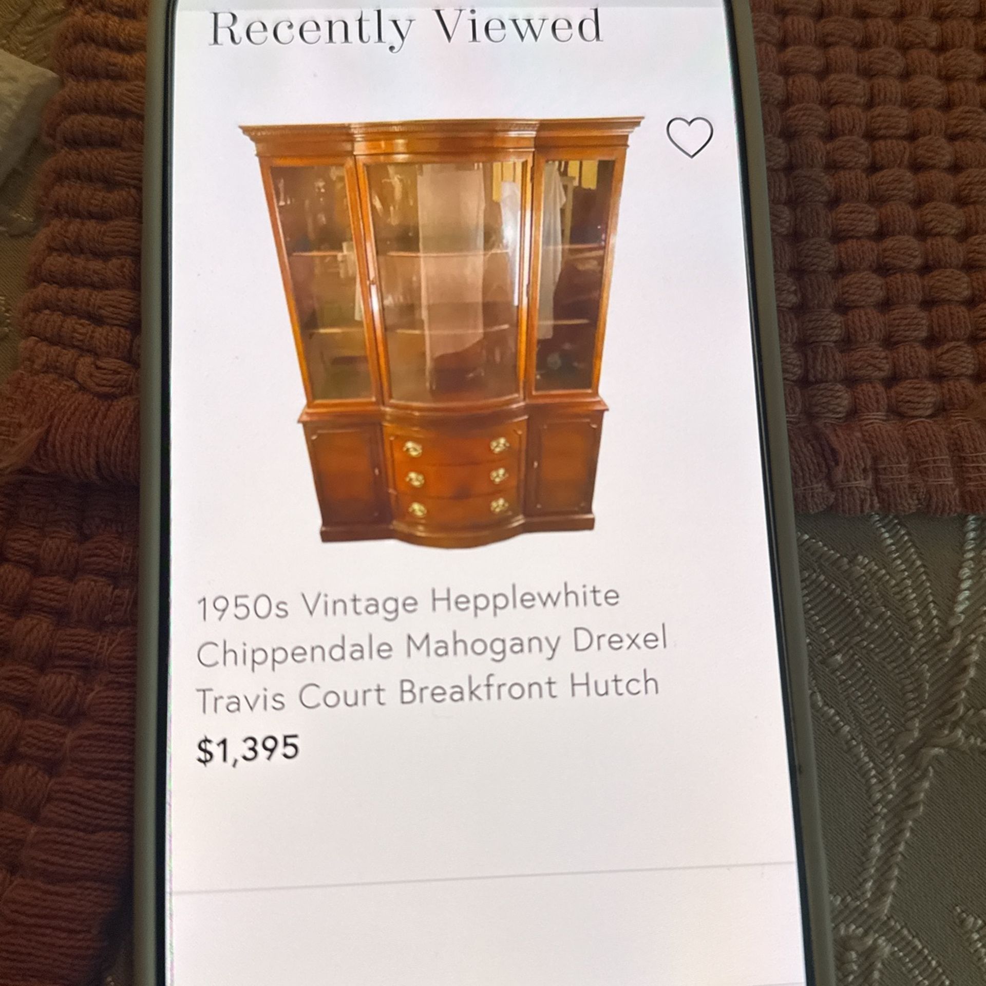 1950 vintage Hepplewhite chippendale mahogany Drexel Travis court breakfront hutch. In excellent condition. Vine decals removable. Must be picked up no delivery