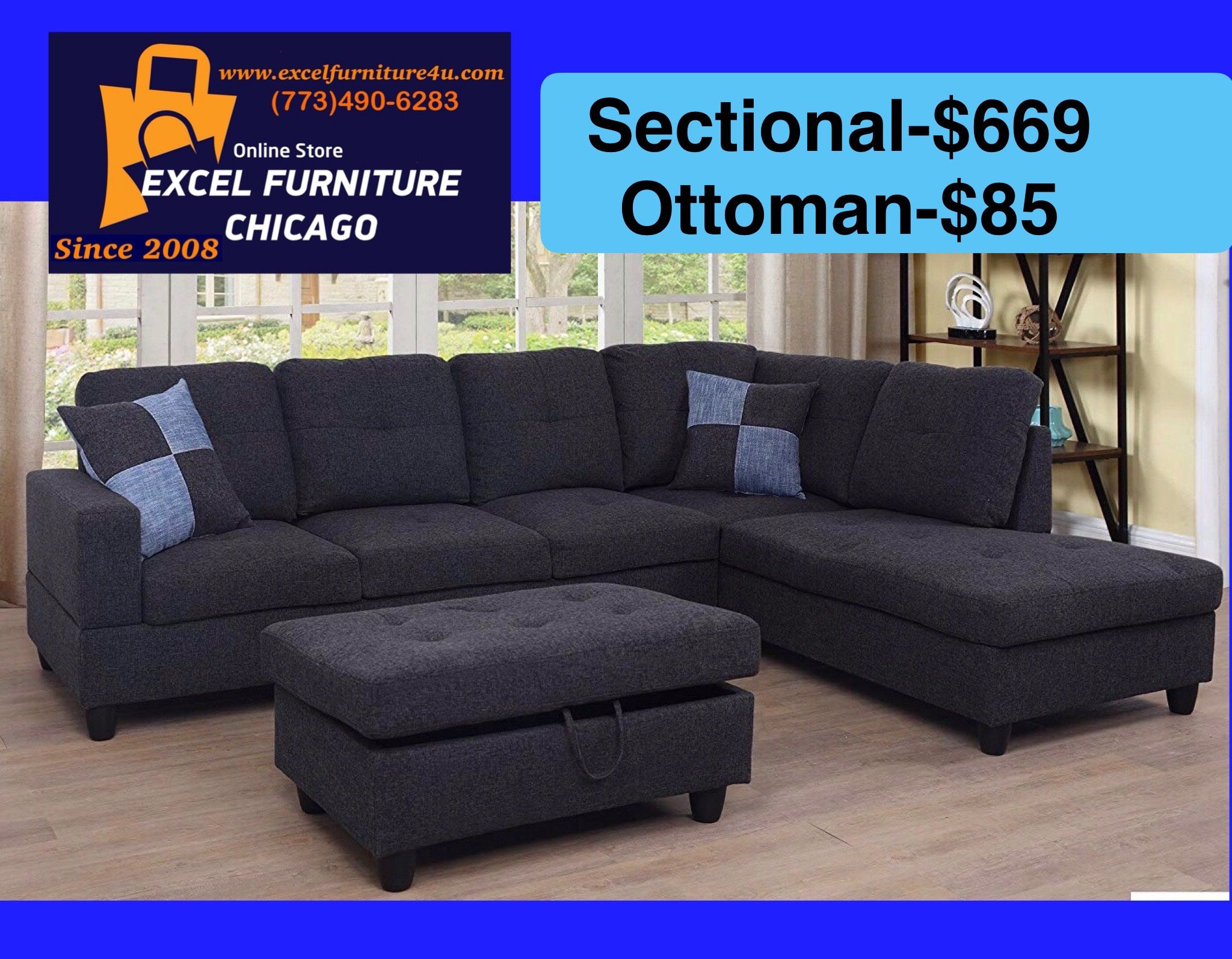 ♦️ORDER NOW – PAY WHEN IT ARRIVES. Chicagoland area and around ( Chicagoland, Rockford, Milwaukee) 🎁BIG SALE🎁BRAND NEW FURNITURE Buy sectional with ottoman, get: FREE DELIVERY FREE TAX $754 —Sectional with Ottoman Cash or Zelle upon delivery EXCEL FURNITURE CHICAGO Online Local Furniture Store SINCE 2009 🌸excelfurniture4u. com🌸 #Sofa, #couch , #love seat, #chair, #sectional, #Recliner, #reclining set, #bedroom, #dining room, #table, #bed, #dresser, #chest, #nightstand