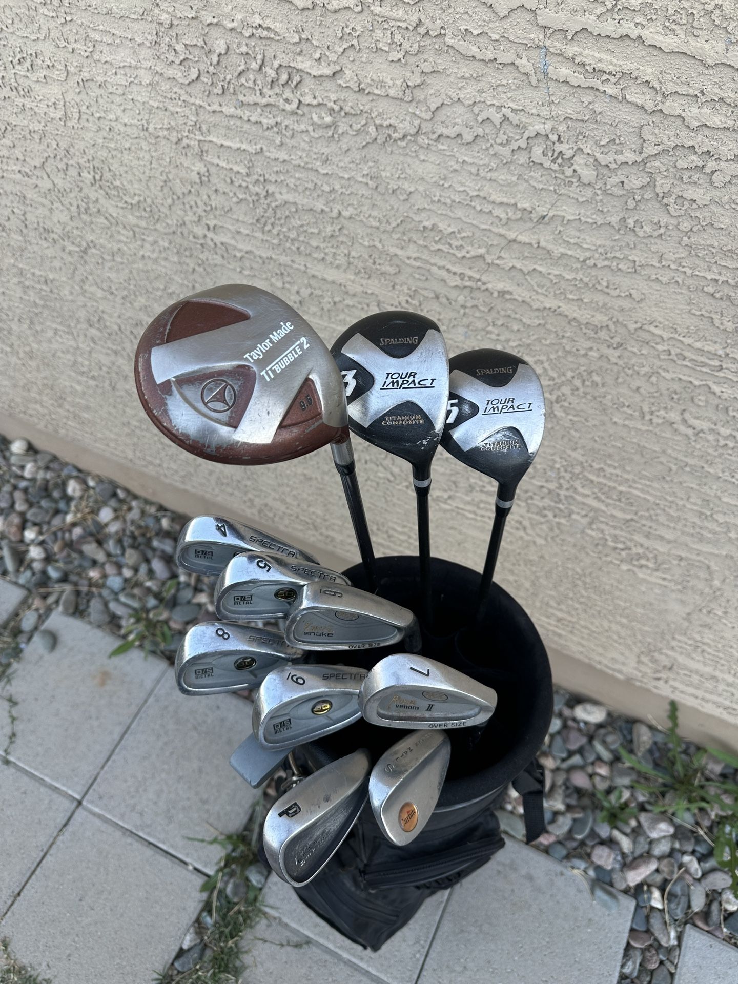 Driver 3 & 5 wood Iron set 4-9 pitching & sand wedge Putter Bag , all zippers work and comes with cover $100 obo Located west valley glendale Titleist ping taylormade mizuno cobra callaway pxg srixon wilson nike Cleveland golf clubs golfing irons iron golf bag