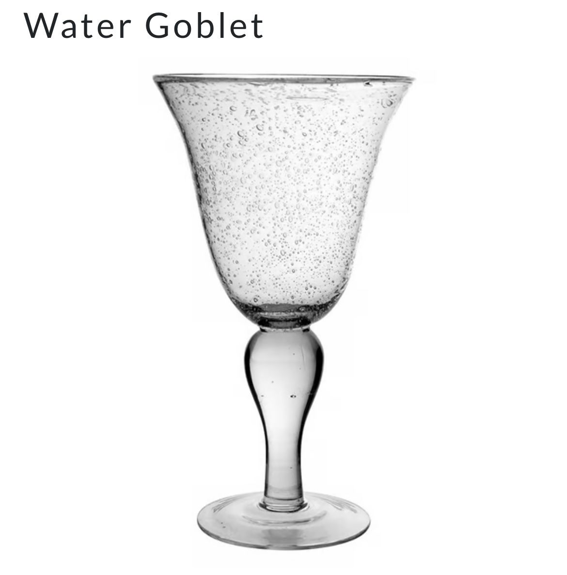 10 water goblets Height: 8 1/4 in • Width: 4 1/2 in • Special Characteristics: 14 OZ 25 each • Blown Glass