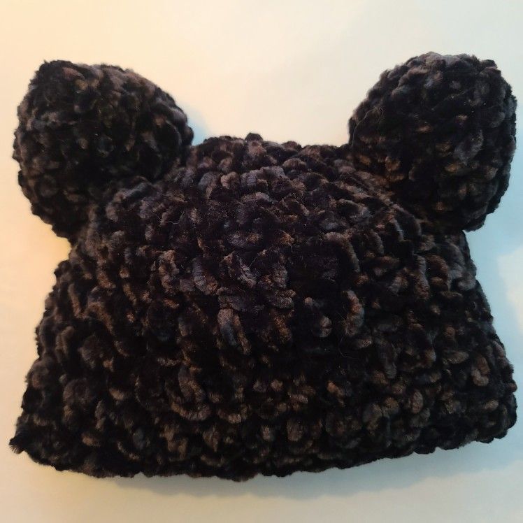 Handmade Crochet Espresso Cozy Soft Chenille Baby Bear Ears Hat NB 0-3 Months