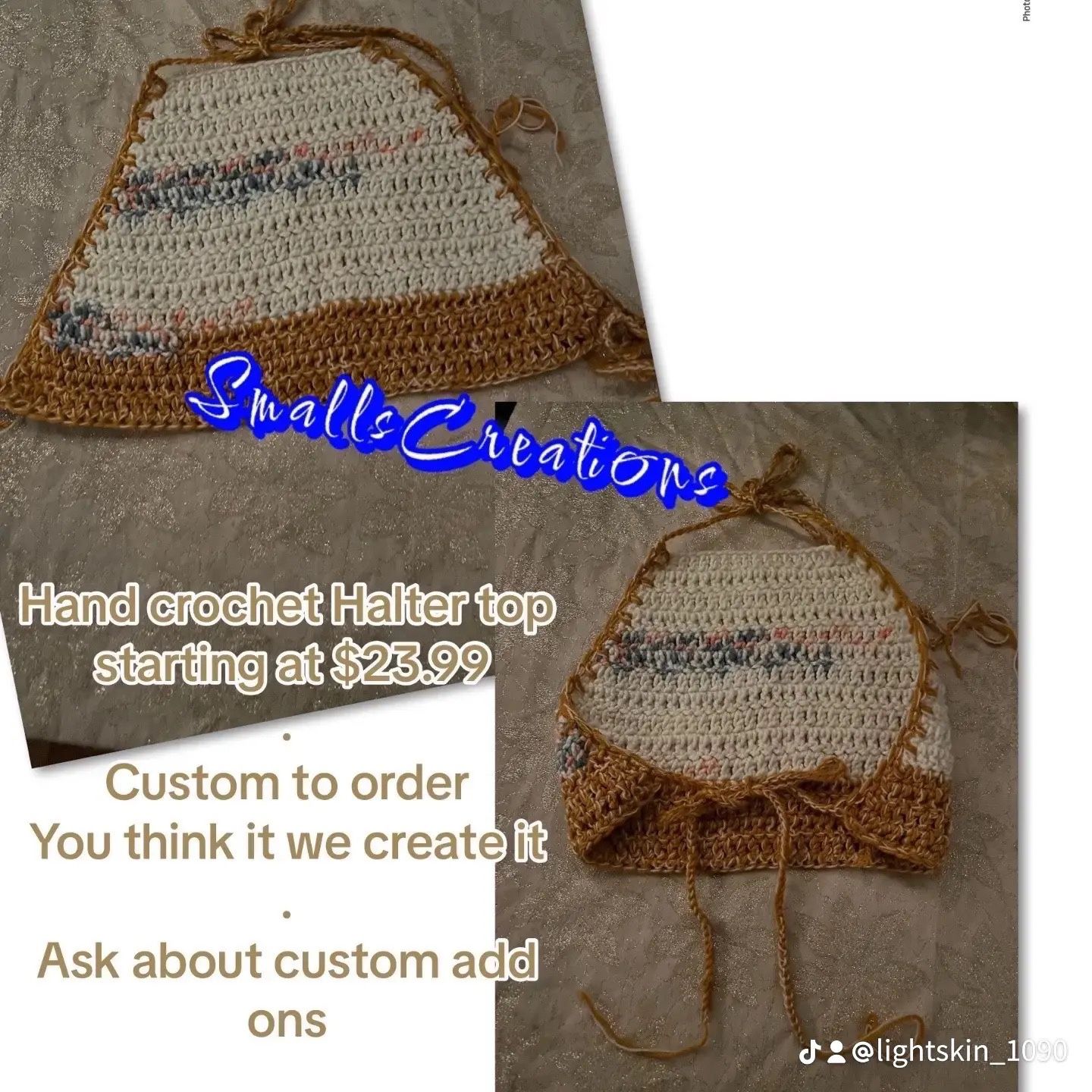 Hand crochet Halter top starting at $23.99 Custom to order You think it we create it Ask about custom add ons