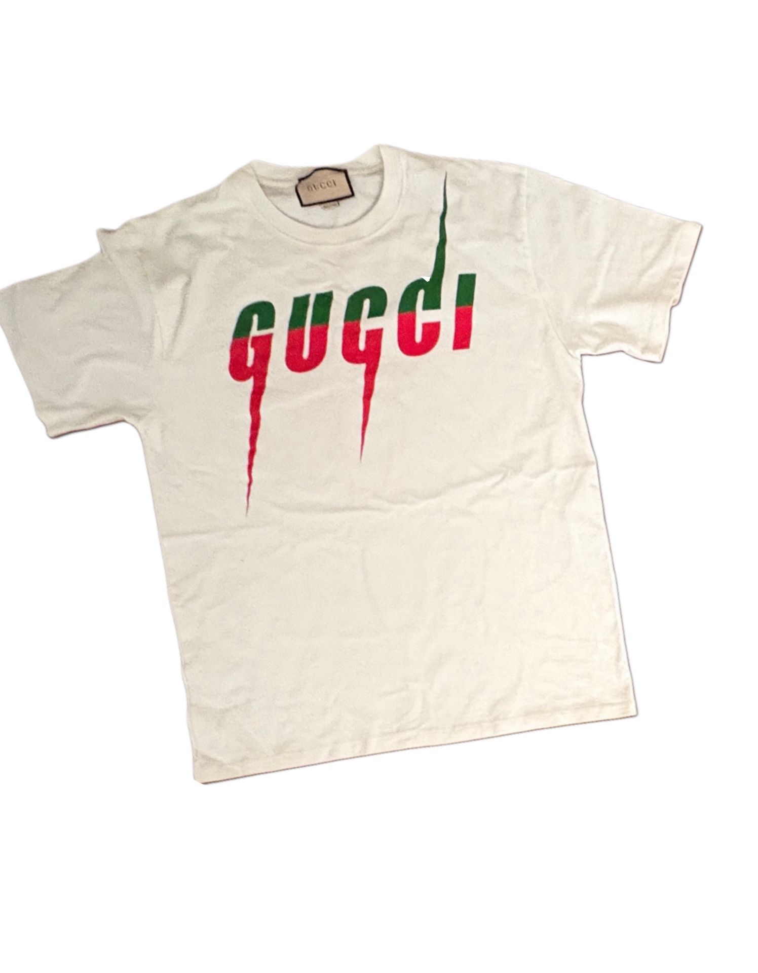 AUTHENTIC Gucci Lightning Bolt Tee White/Red/Green $400 Worn once Bold GUCCI lightning font in red and green on a cream tee Rare graphic design, no flaws