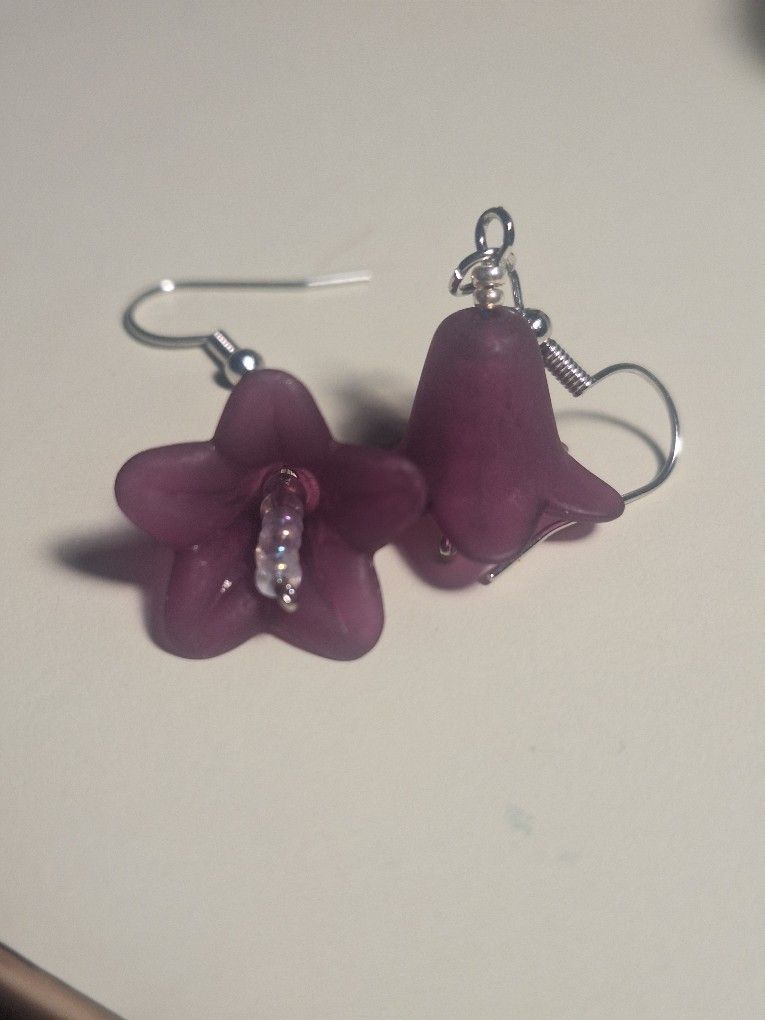 Lavender Flower Charm And Bead Earrings Silver Base