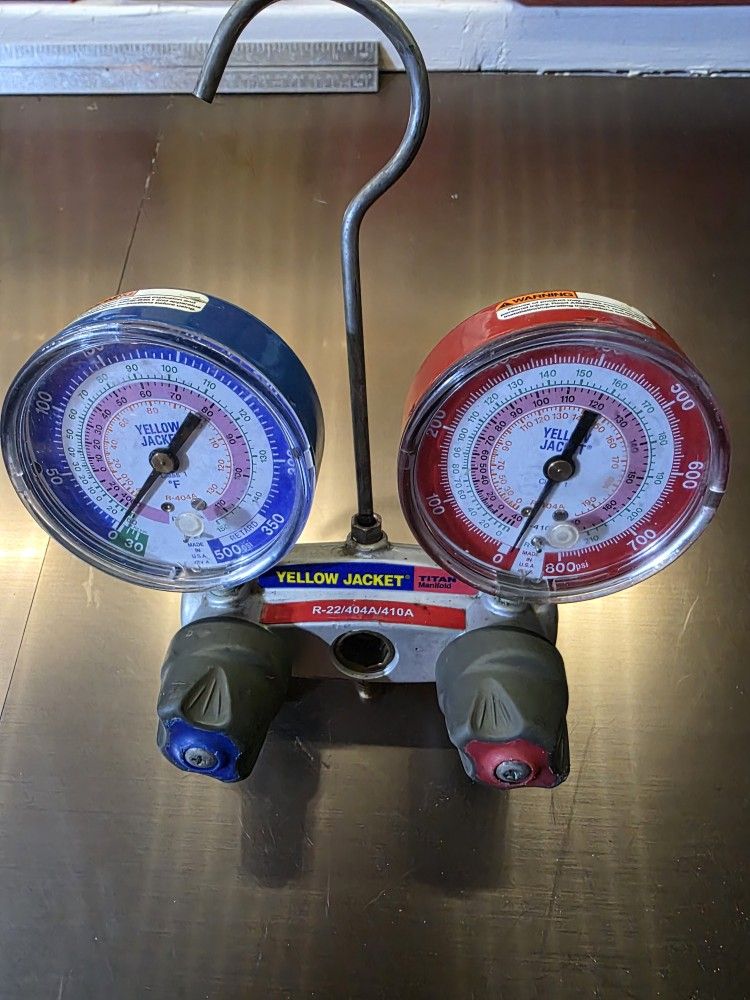 Yellow Jaclet analog manifold gauge. Great condition