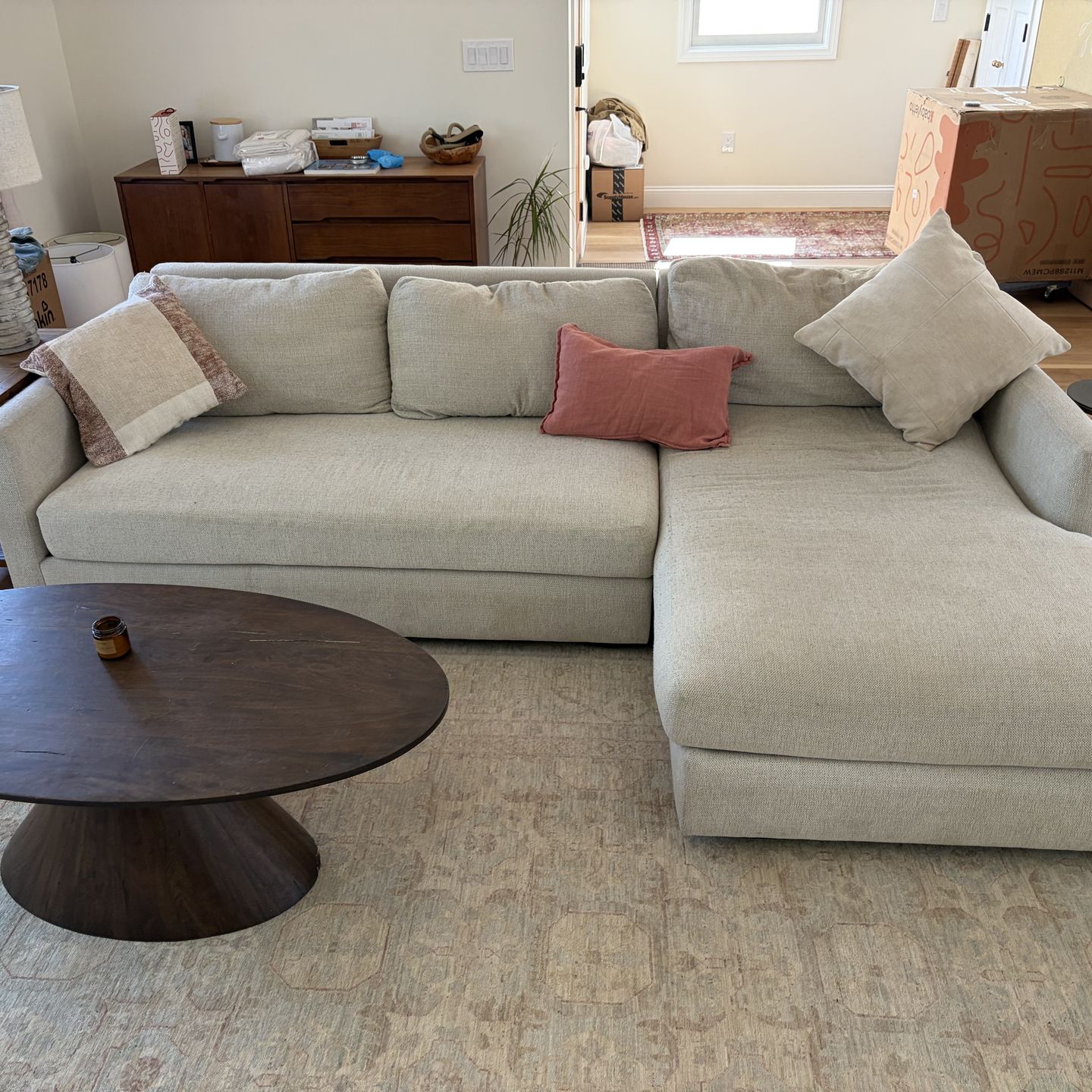 5 years old coat $4,500 brand new. Upgrading with another Joneses sofa. They’re great! Very comfy. 103” wide, 39” deep, Chase is 65”