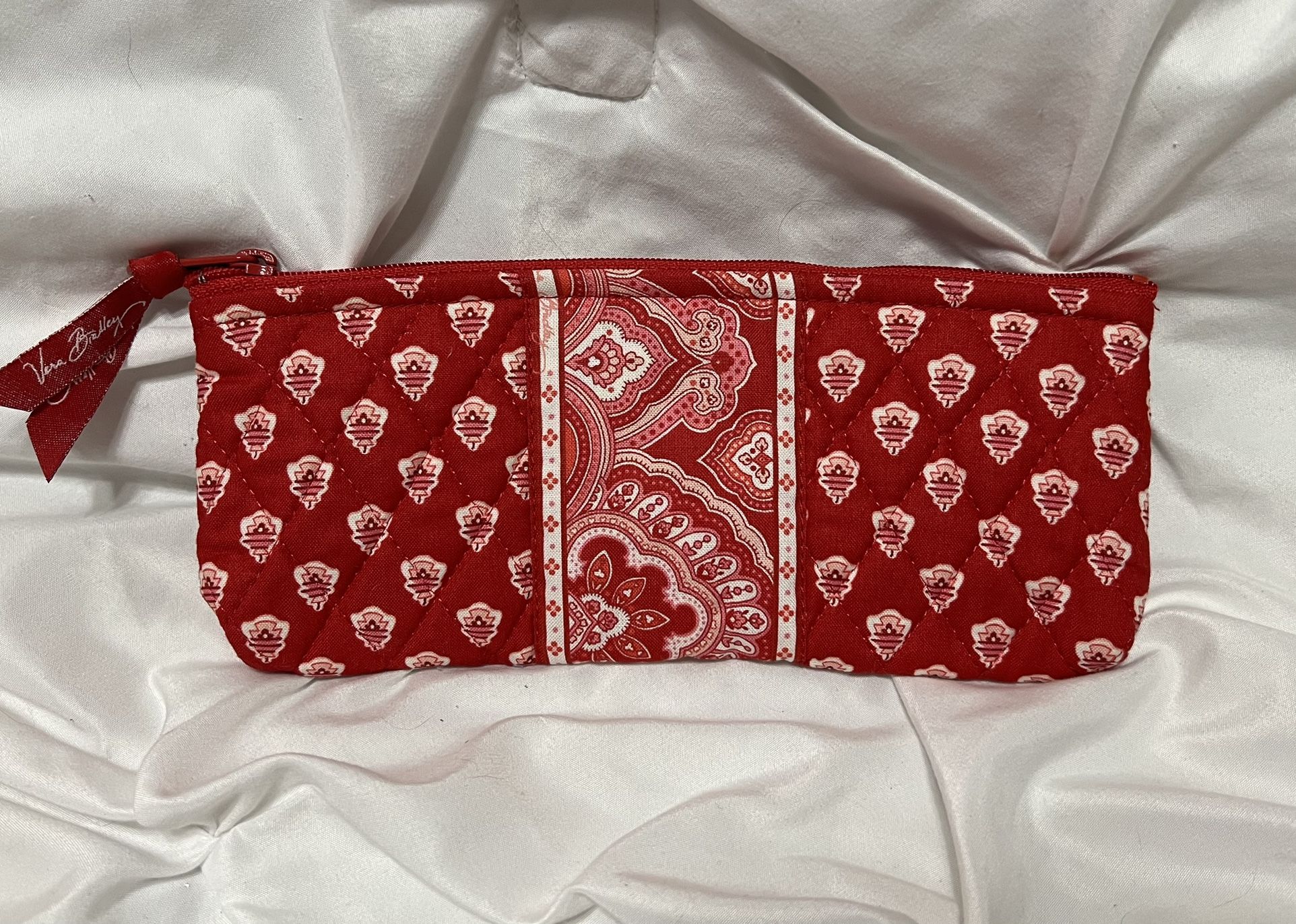 Very nice, vintage Vera Bradley brush or pencil pouch in Nantucket Red. - measures approximately 8.75L x 3.75H x .75W - made of 100% cotton - machine washable, line dry - zipper closure - excellent, clean condition - smoke-free home