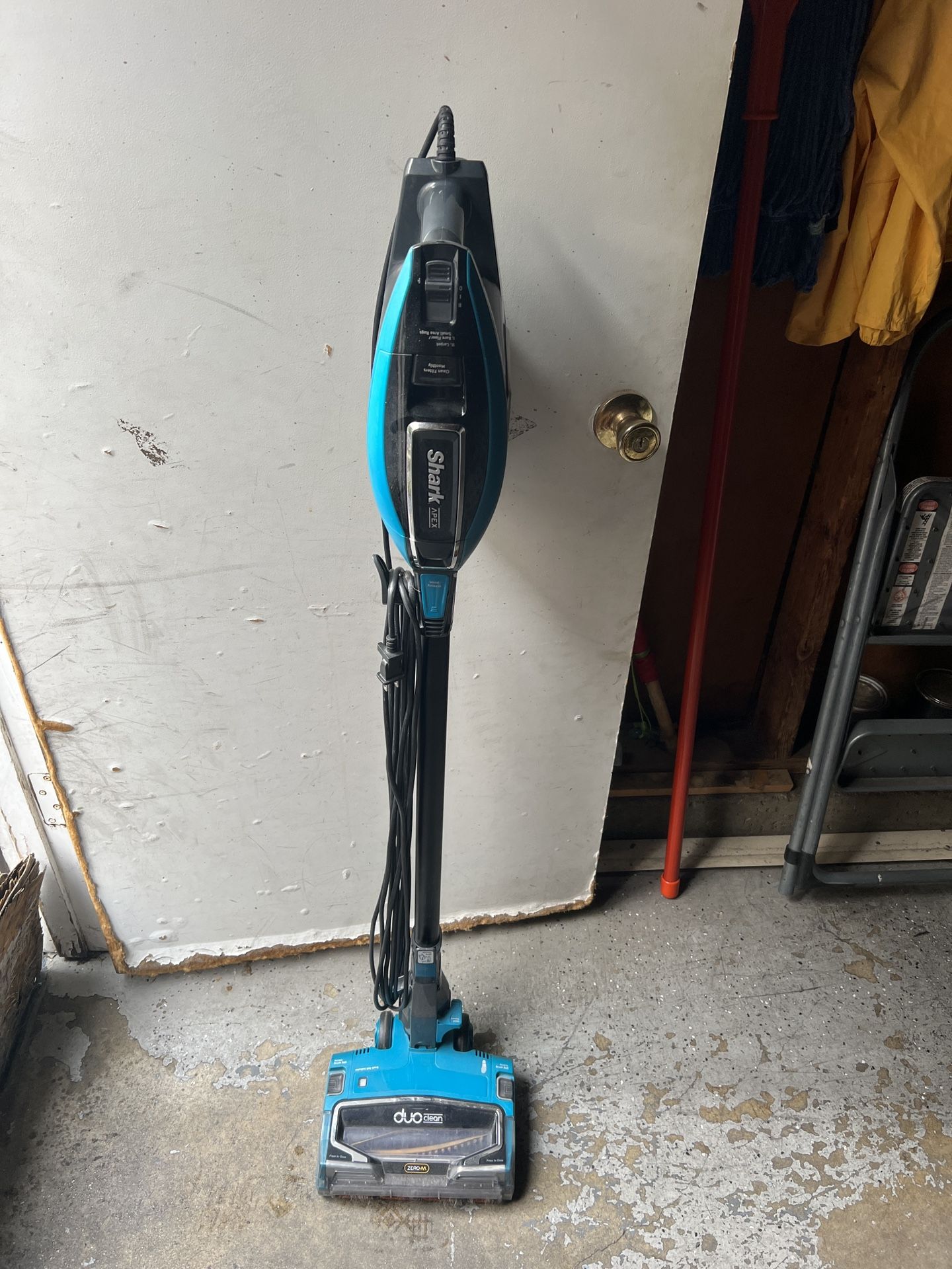 Shark ZS362 APEX Corded Stick Vacuum with DuoClean and Self-Cleaning Brusholl, Precision Duster, Crevice and Pet Multi-Tool, Forest Mist Blue, 10.2 in L x 9.8 in W x 46.4 in H Works really good. Rarely used. In really good condition.