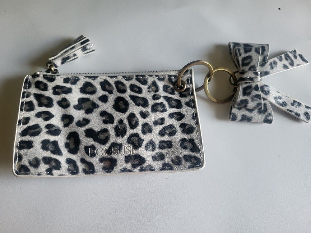 Coin wallet with zipper, card holder, gold hardware and bow key chain snow leopard pickup only in Kyle Tx