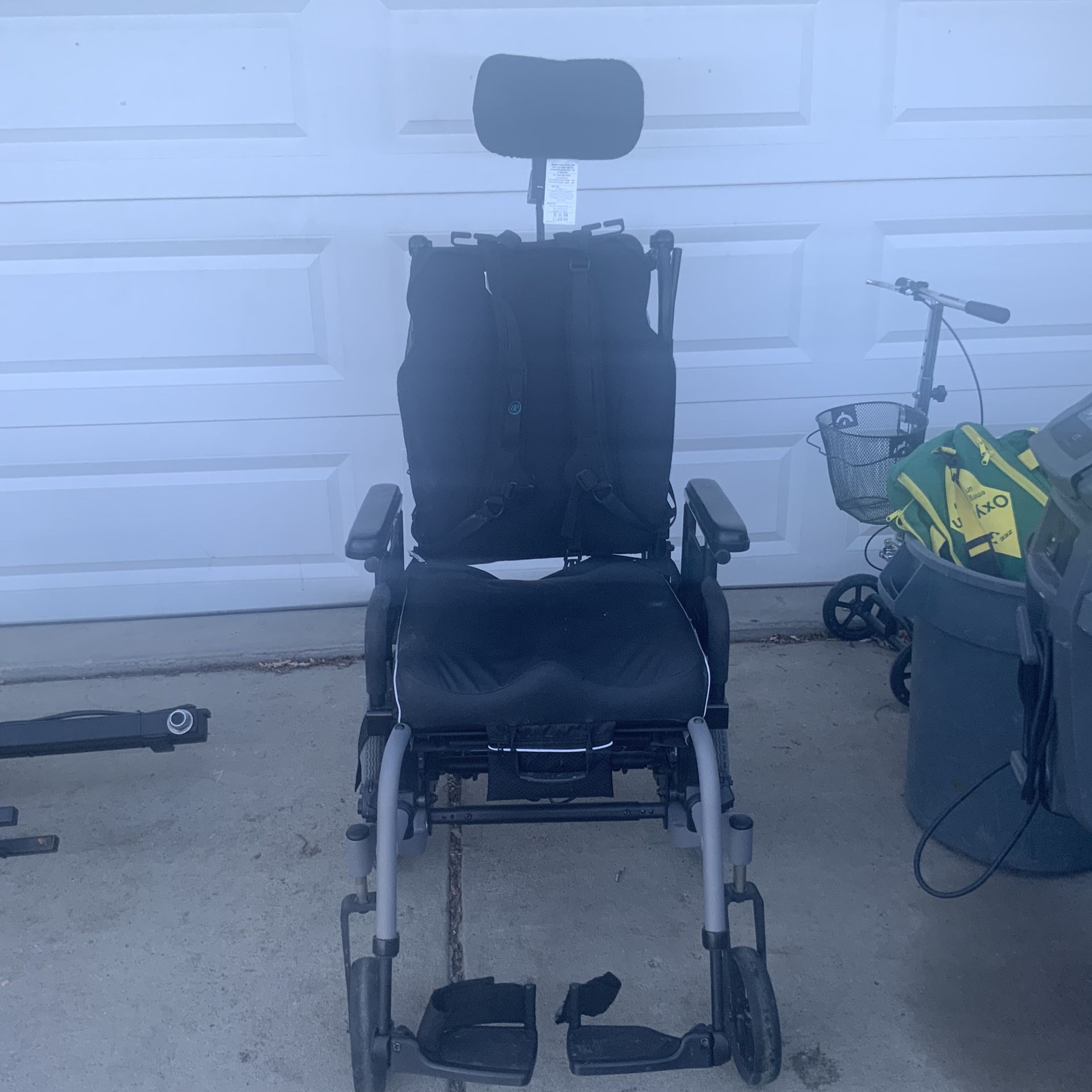 quickie iris tilt in place transport black 18wx20d seat comfort back comfort headrest nice Hd chair Weight capacity 300lbs Shoulder straps Nice condition