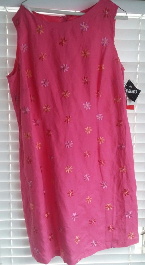 R & K Linen/Rayon Pink Azalea Sheath Sleeveless Dress/18W/New