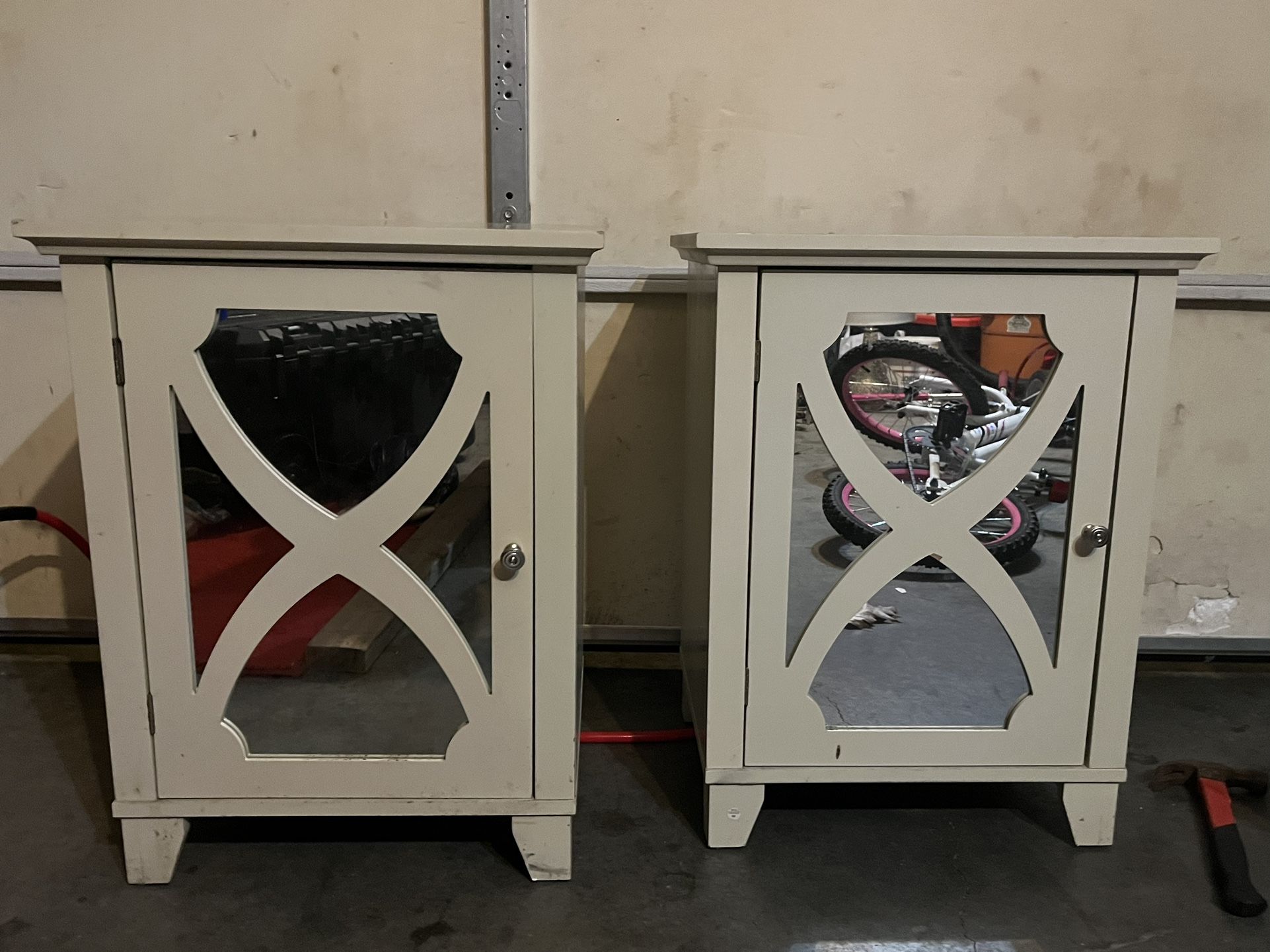2 end tables with mirrors on the doors. great condition