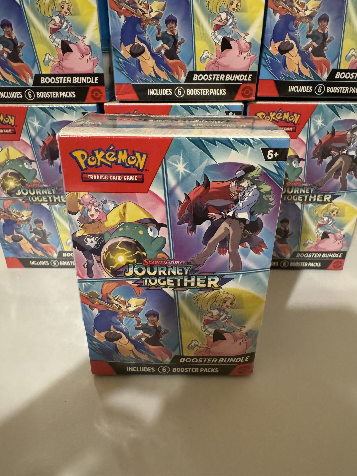 (7) boxes available. Buy multiple for a discount. Price is $45 each for singles Six booster packs from Pokémon TCG: Scarlet & Violet—Journey Together.A great way to start your collection of the Pokémon TCG: Scarlet & Violet—Journey Together expansionThe Pokémon TCG: Scarlet & Violet—Journey Together expansion Over 180 cards for you to collect