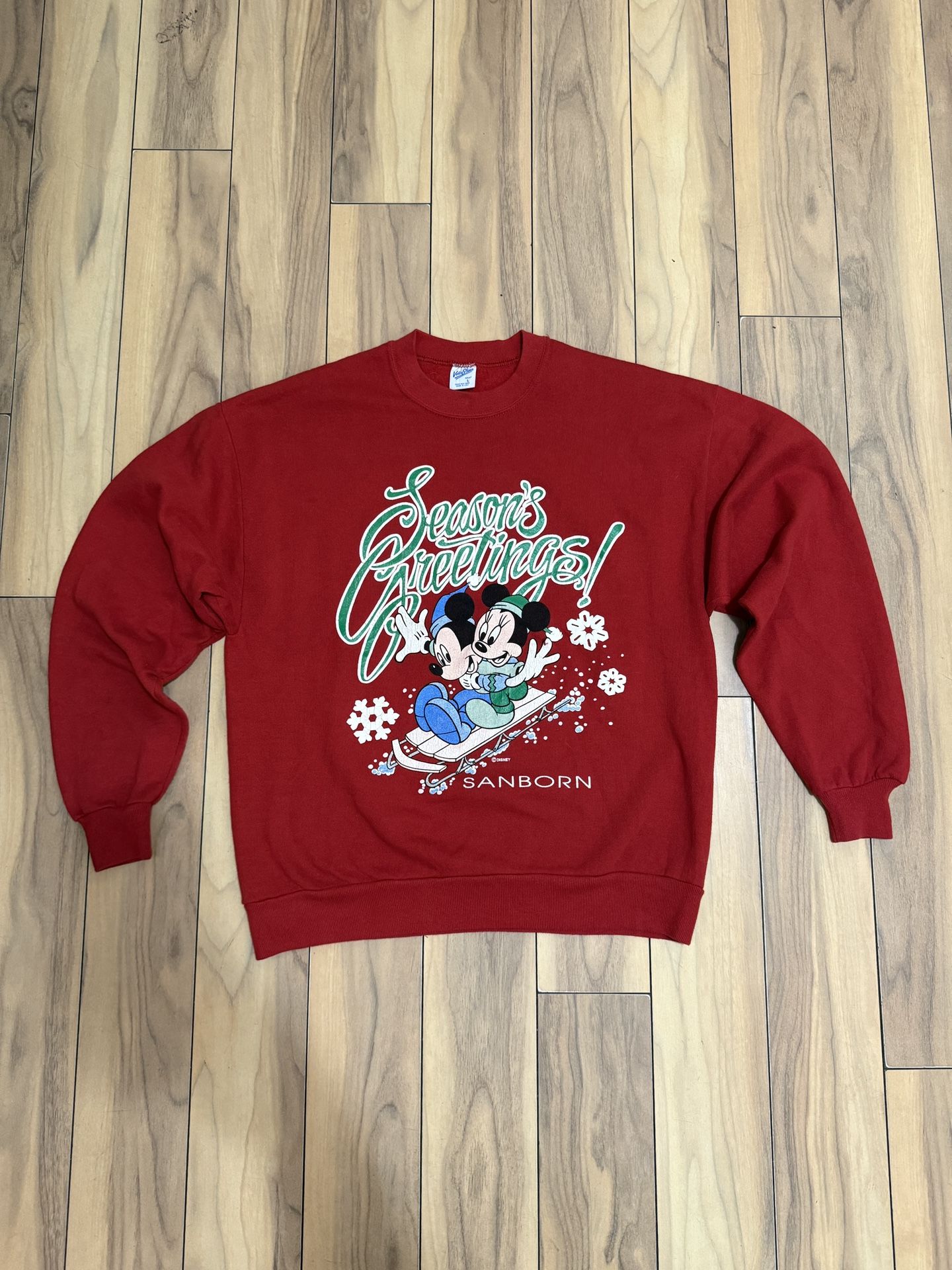 Vintage 90s Disney Mickey Mouse Seasons Greetings Christmas Sweatshirt. Has small hole as seen. Size L can fit Medium as well. Se Habla Español. Shipping Available…