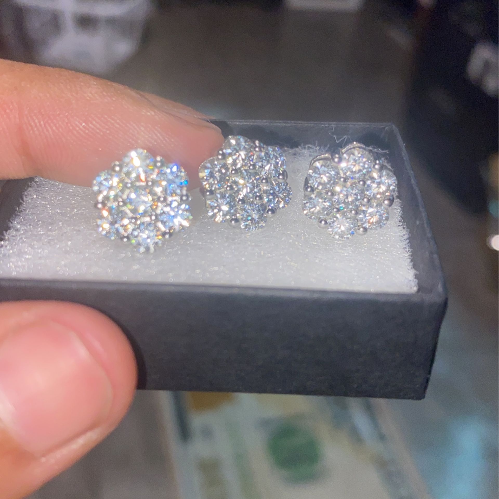 3 earrings size 11m moissanite flower earrings all pass diamond tester ! 925 silver they bring a lot of attention !