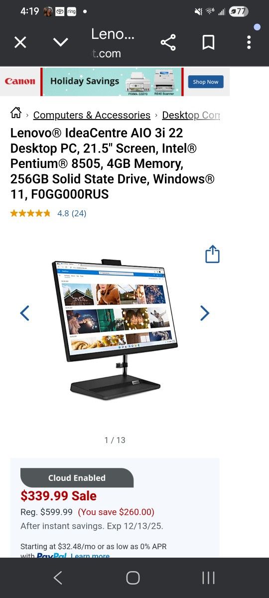 Lenovo all in one desktop computer Only used a few times but no longer need it. Like new condition! Makes a Great Christmas gift