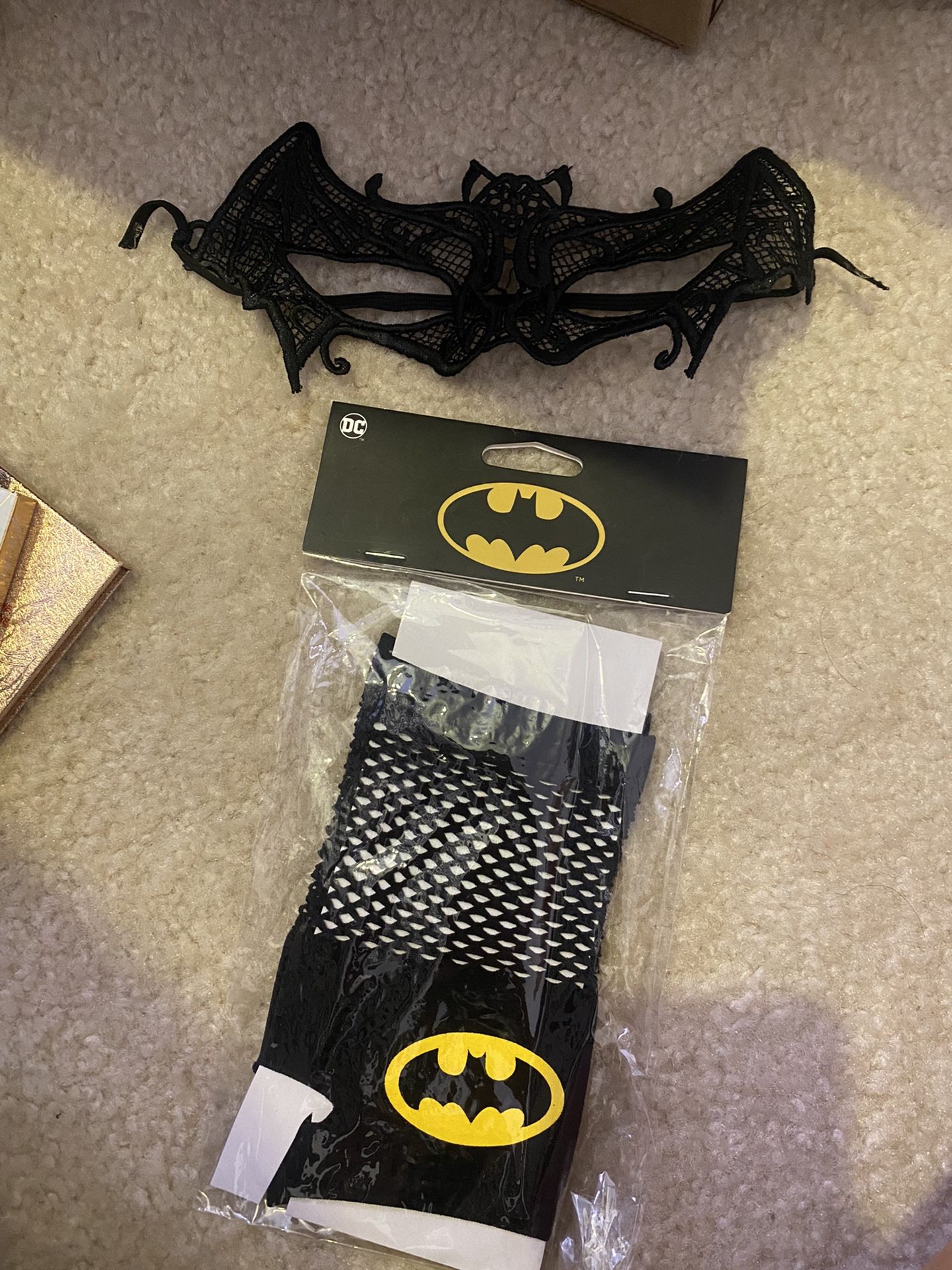 Never worn batman gloves & bat mask! Can be sold separately