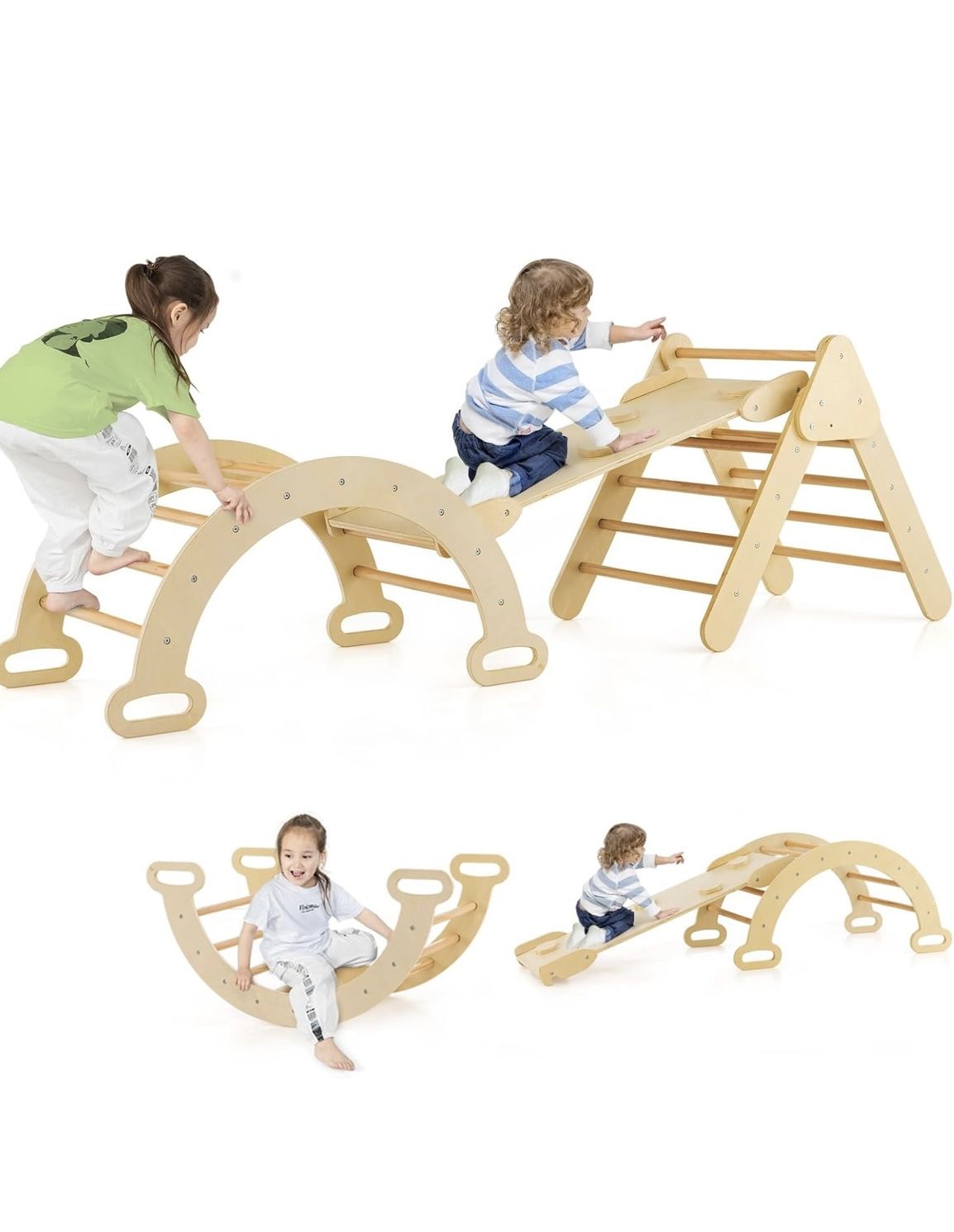 Costzon Climbing Toys for Toddlers, 5 in 1 Foldable Montessori Wooden Arch Climber Ladder with Sliding Ramp Great condition