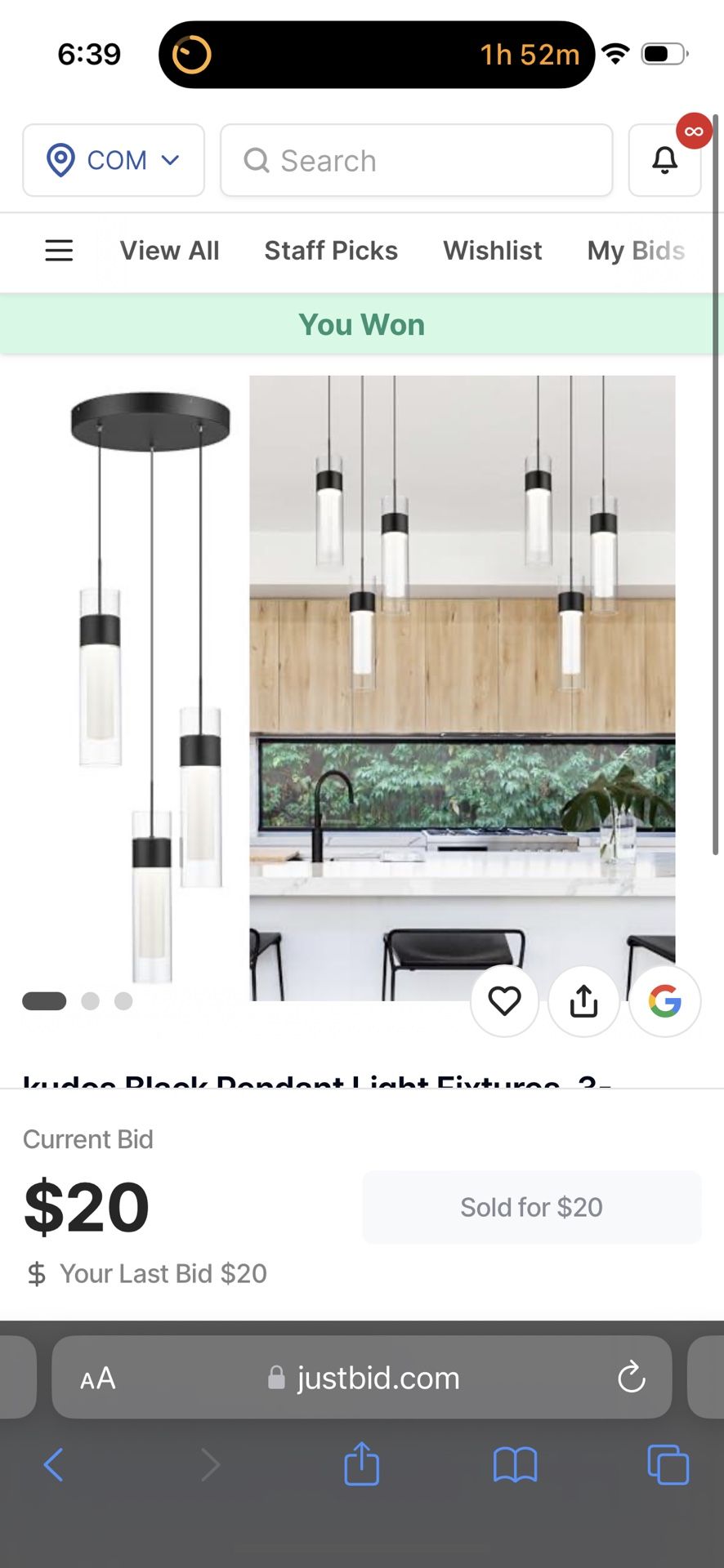 kudos Black Pendant Light Fixtures, 3-Lights, Modern LED Pendant Lights with Clear Glass and Milk Glass, Adjustable Pendant Lights for Kitchen Island, KDPL10-BK-3L