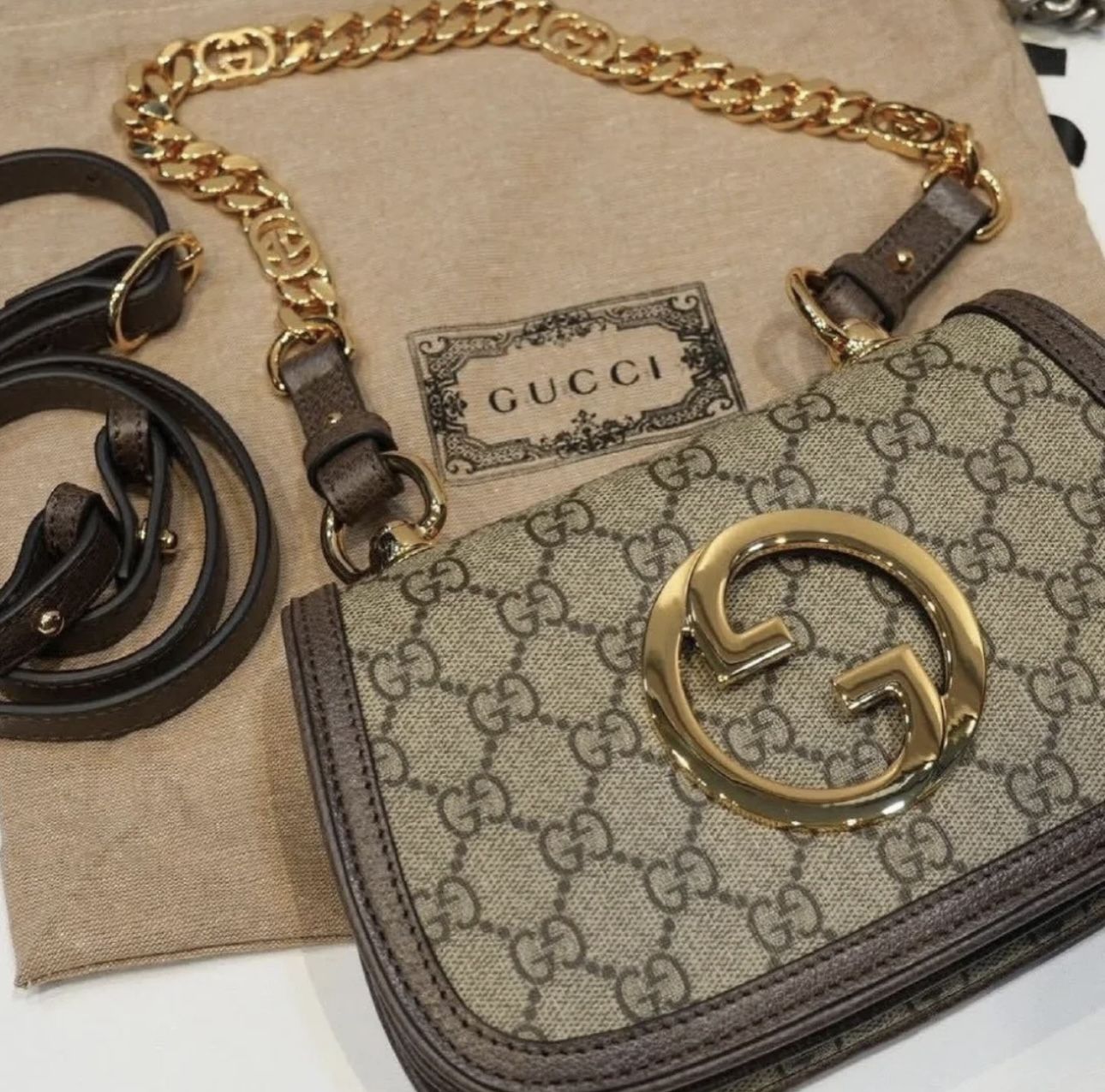 Authentic Gucci Blondie Small Shoulder Bag in excellent, like-new condition. This bag features the iconic oversized interlocking GG logo, smooth leather, and a sleek, timeless silhouette that elevates any outfit. Perfect for everyday wear or dressing up, this bag is lightweight, stylish, and highly in demand. Worn only a few times and kept in great condition. IF YOU ASK ME IF THIS ITEM IS AVAILABLE AND THEN YOU STOP RESPONDING WHEN I SAY YES I WILL NOT SELL TO YOU.