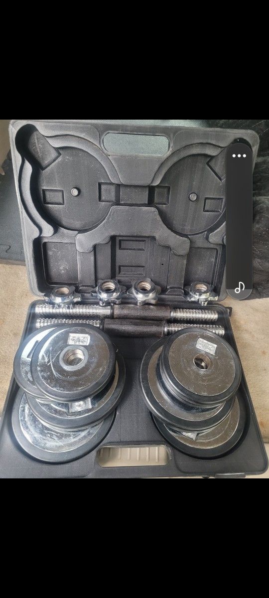 18lbs each chrome rubber coated adjustable dumbells with carrying case
