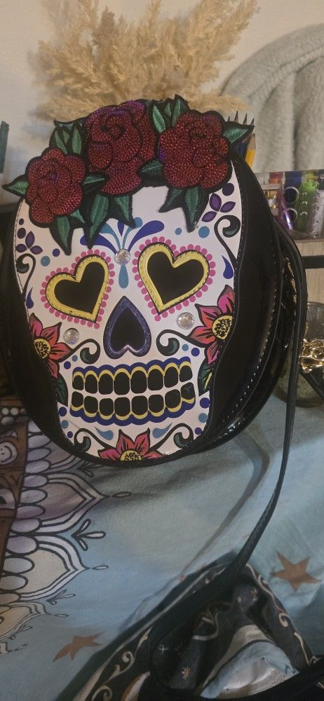 Fun and bold purse with colorful sugar skull design – perfect for Betsey fans! Great condition Adjustable strap (crossbody or shoulder) Spacious with zipper & pockets