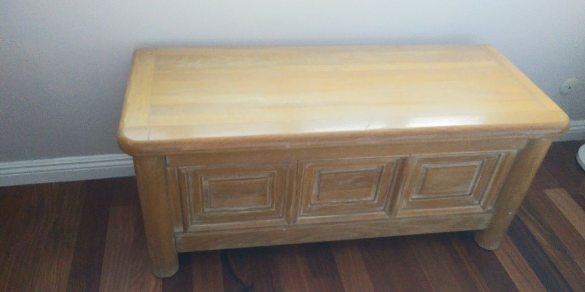 Top opens for linen or blanket storage. 49" wide 20" deep 23" high Matching dresser, Queen headboard and 2 nightstands (with drawers) also available.