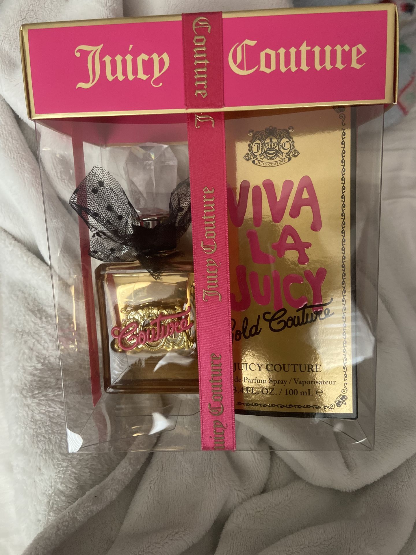 Does come with a small juicy couture pink bag. Yes, you are able to smell test it!