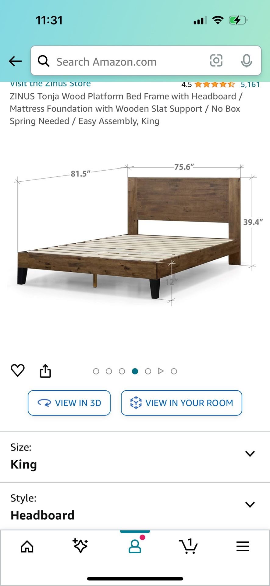 Zinus used like new king size wooden frame 378$ bed frame for 225$. Amazon link https://offerup.co/faYXKzQFnY?$deeplink_path=/redirect/