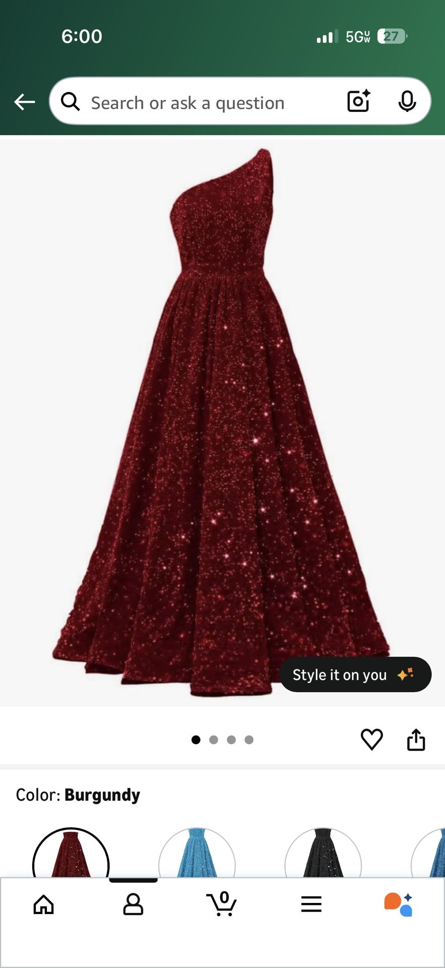 On shoulder sequin dress/gown. Floor length with pockets. Worn once. Purchased from Amazon.