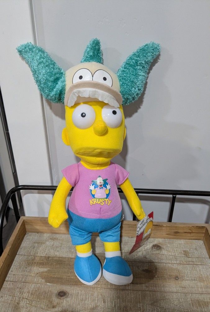 Brand New Bart Simpson as KRUSTY CLOWN with a hat plush doll, measures 17 inches, no holds and fcfs, pick up in nipomo or AG. Cash or Venmo