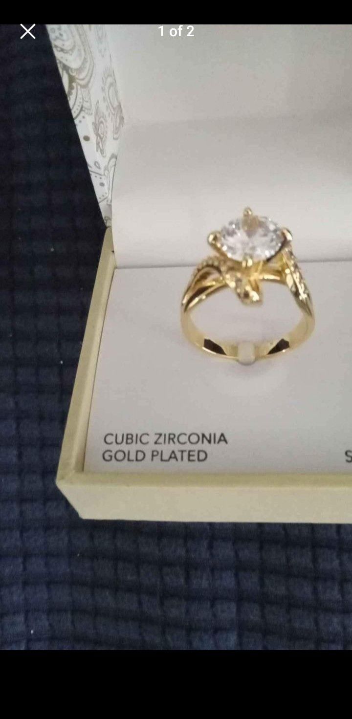 Cubic Zirconia gold plated ring size 9 I bought this at Macy's on sale and I did not realize A size 9 is too big for me. . So new in the box. Pick up in Schaumburg from smoke and pet free home.