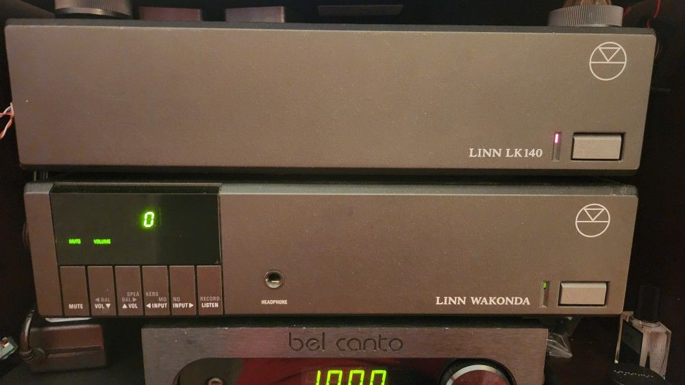An amazing sounding combo of classic Linn at their best. Only reason I'm selling is I'm upgrading to a Naim stack, though part of me wants to keep it and build a second system. Save me from compulsive audiophile insanity and score yourself an incredible pair of separates that have enough juice for pretty much anything. The units have also been used in an actively cooled, temperature-regulated cabinet to ensure they're cool and happy. Includes remote and a pair of proprietary speaker terminals, and the pre also includes the MM phono stage (sounds truly stunning with the Grace F9e and Debut Carbon I'm currently using with Rogers LS3/5A). The preamp seems to sell online between $500 for a parts unit to over a grand for a great unit (comparable to what I have), and the power amp seems to go for around $600, so my price seems fair. Cheers and happy to answer questions
