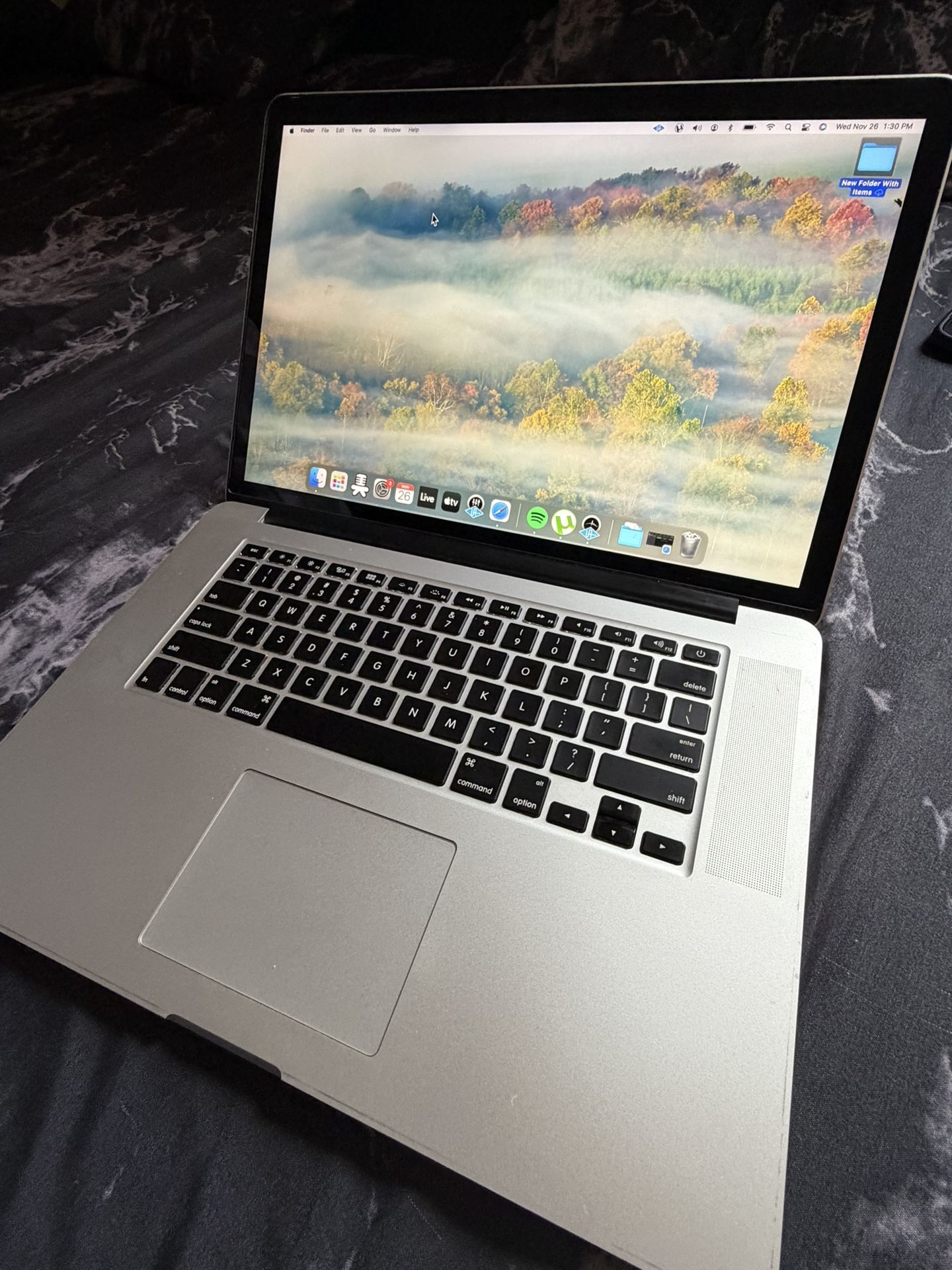 Selling my MacBook Pro Retina 15-inch (Mid 2015) in great working condition. Perfect for DJing, music production, video editing, school, or everyday use. 💻 Specs: • Model: MacBook Pro (Retina, 15-inch, Mid 2015) • Processor: 2.8 GHz Quad-Core Intel Core i7 • Memory: 16GB 1600 MHz DDR3 • Storage: 1TB SSD (Super fast, plenty of space) • Graphics: Intel Iris Pro 1536 MB • macOS: Monterey 12.2.1 (clean & smooth) 📦 Condition: • Fully functional, no issues • Battery holds a good charge • Screen + keyboard work perfectly • Normal cosmetic wear for age (nothing major) 🧹 Fresh Reset: Mac was cleaned up, optimized, and ready for a new owner. You’ll get it with plenty of storage available and no personal data. Best offer takes it !