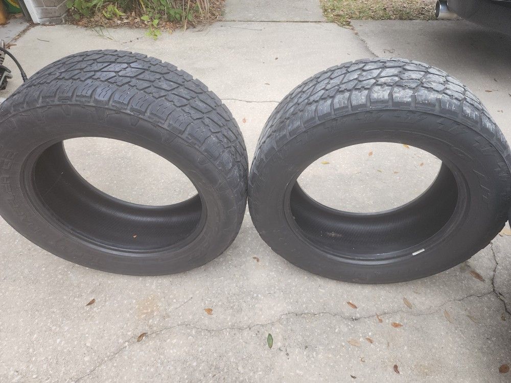 Set of size 305/50 R 20 TERRA GRAPPLER G2 tires with good tred. Can meet or deliver in greater Orlando area for extra 20$ on top. These same tires sell for over 200$ each tire alone online right now as shown in pics.