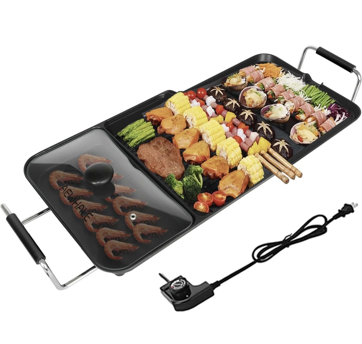3-in-1 Electric Nonstick Griddle Grill 1800W,Teppanyaki Grill with Removable Temperature Control & Drip Tray for Pancakes Burgers Eggs,22"x 10.5"