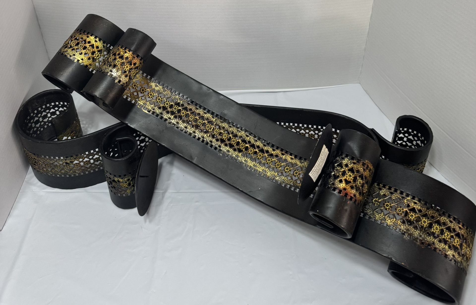 Beautiful black and gold decorative metal candle holders. Perfect for home decor, dining table, or centerpiece display. ✨ Features: • Sturdy metal design • Elegant black with gold accents • Unique curved style • Great for candles or decorative use 📦 Includes: Set of 2 pieces 📍 Condition: Pre-owned, good condition (see photos) Perfect for living room, dining table.