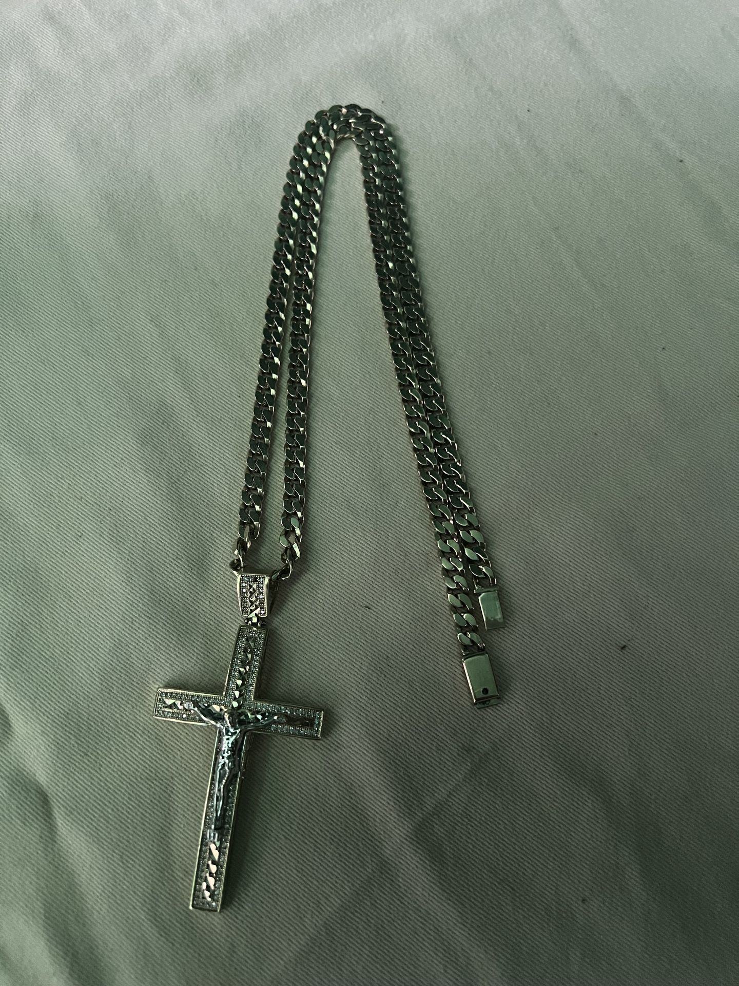 Chain: 24in (length) 4mm(width) The stones on the cross are cz Considering trades(24k preferred) Can meet at pawn or jewelry shop to authenticate Local meetups in Stockton preferred Sell me your gold or silver (cash ready✅) Hablo español👋🏿