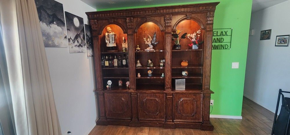 Have this wood cabinet. Two pieces top and bottom. Has 3 lights that dimmable. Solid build. All shelves are held in place with scraw in pegs. $1500obo make a reasonable offer Location Cactus rd and 35th ave