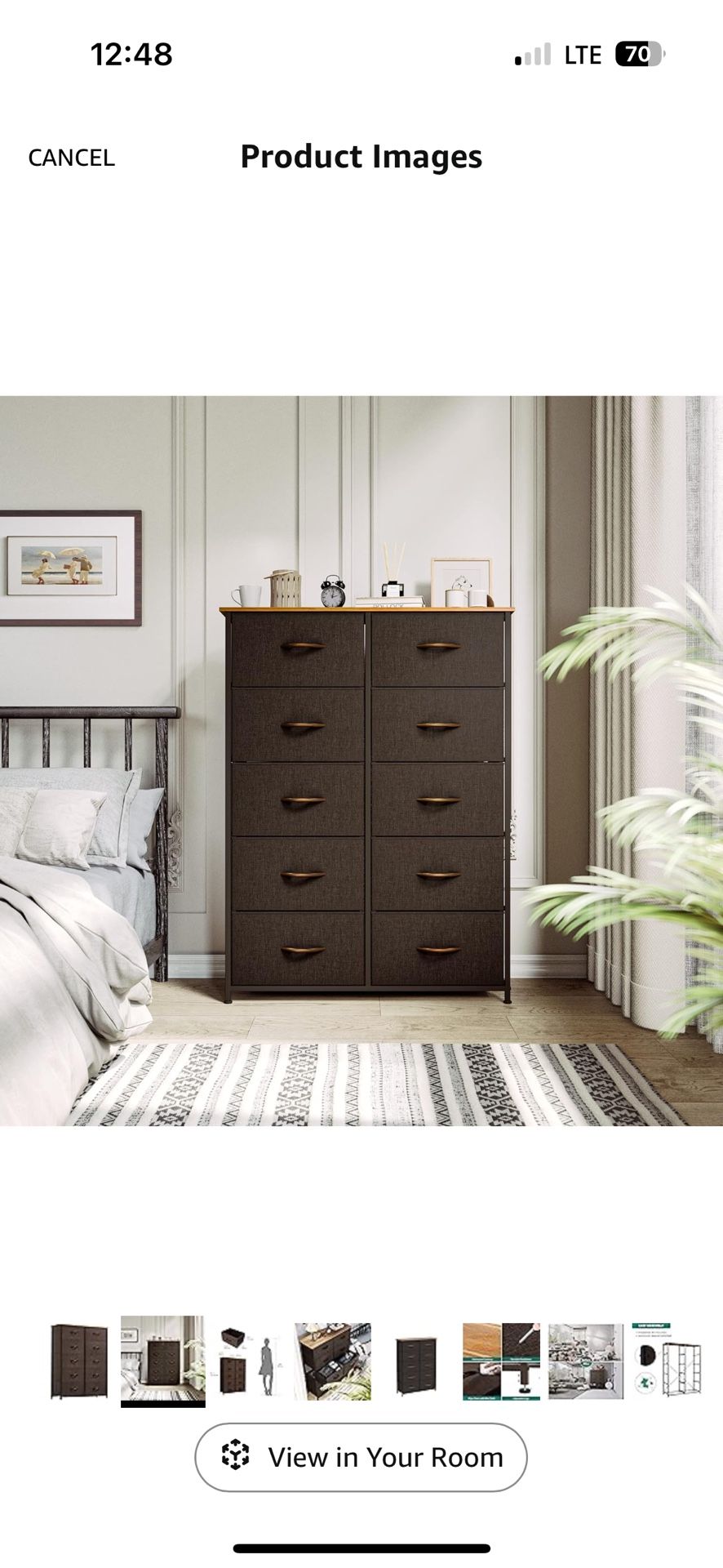 Tall Dresser with 10 Drawers, Furniture Storage Drawer Unit, Sturdy Steel Frame, Wooden Top & Easy Pull Fabric Bins Fully assembled. See 2nd picture for dimensions. Open to best offer!