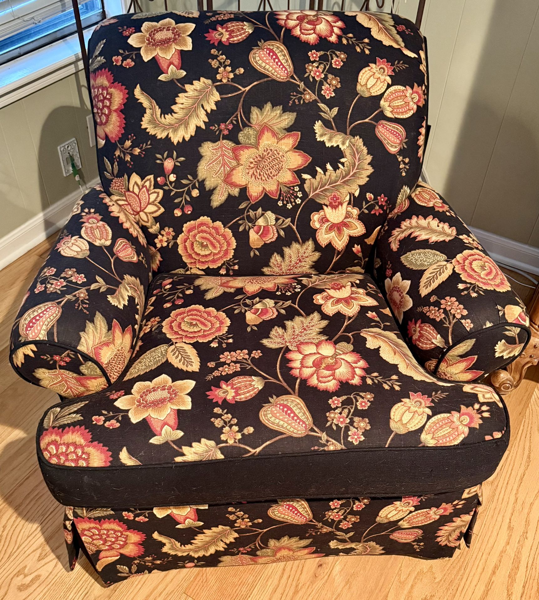 Black Floral Chair With Ottoman