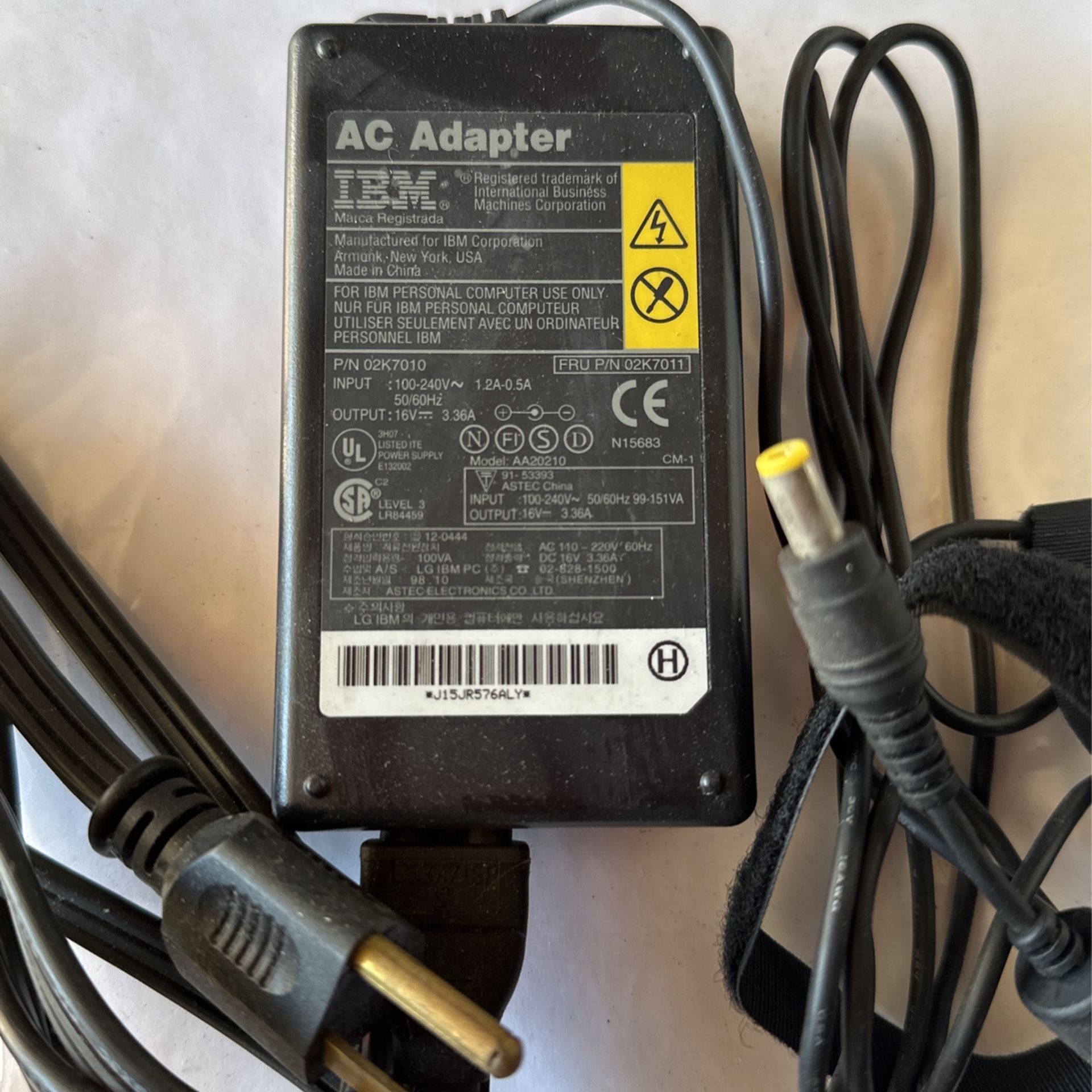 IBM AC Adapter IBM part number 02K7010 FRU P/N 02K7011. Output 16 volts 3.36A. Model number AA20210 Only $5.00 OBO Lenovo Dell IBM HP