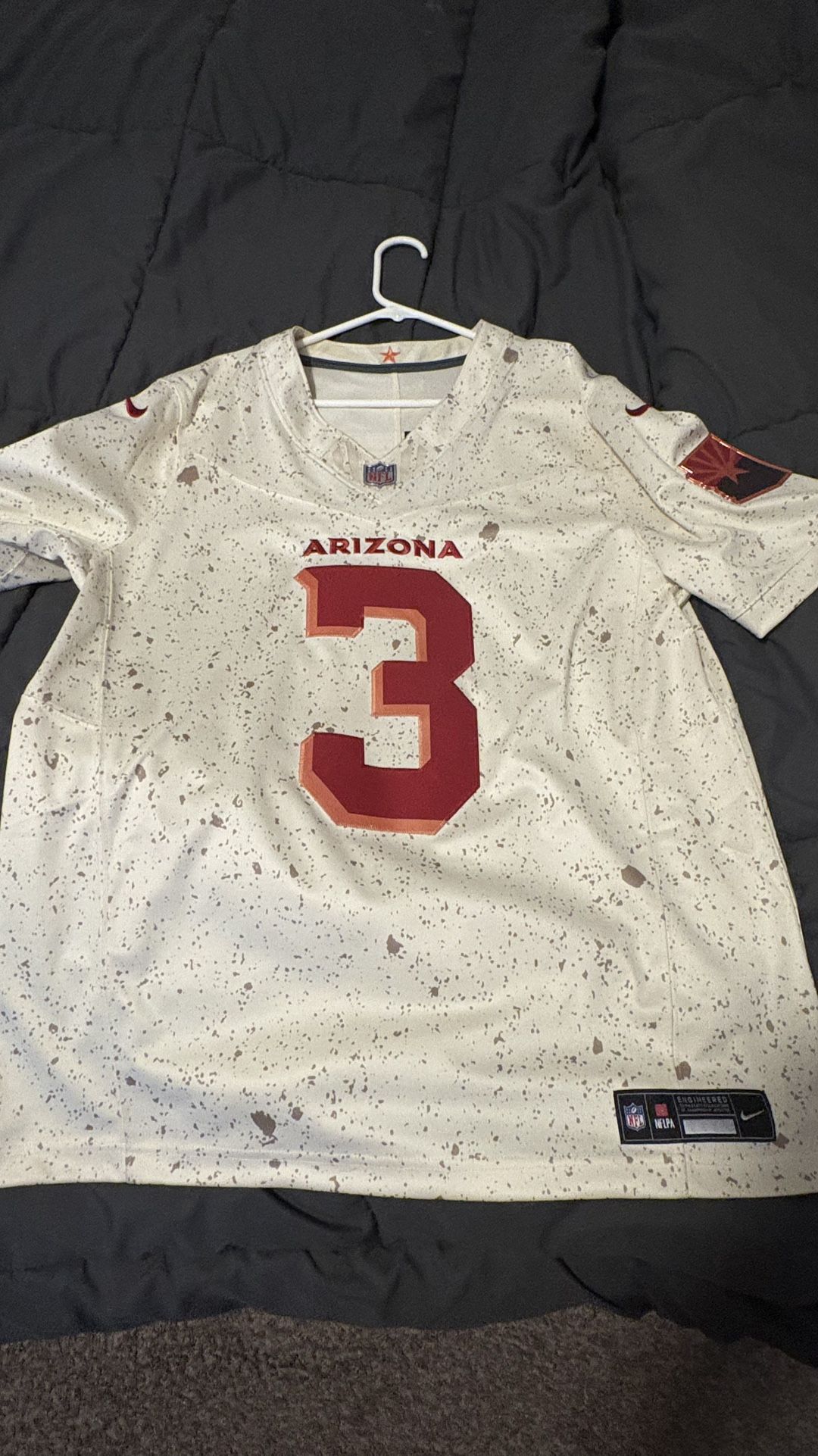 It is the Nike Vapor F.U.S.E/ Dry-Fit style The jersey of the player is Budda Baker It is stitched, and the Arizona state patches are stitched on the jersey. It is in very great condition Size: Large
