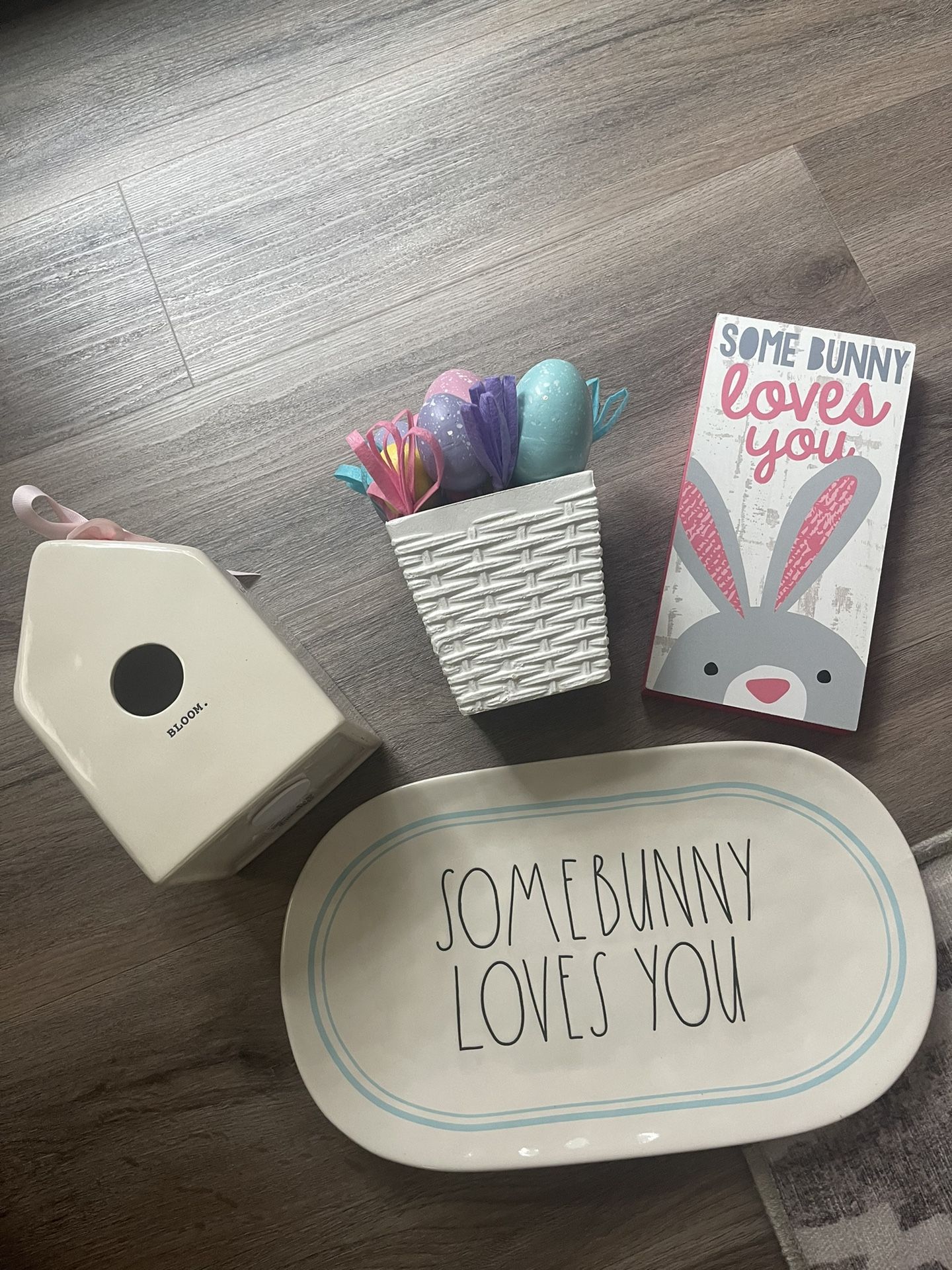 Serving tray Wooden sign Rae Dunn birdhouse Easter Egg plant