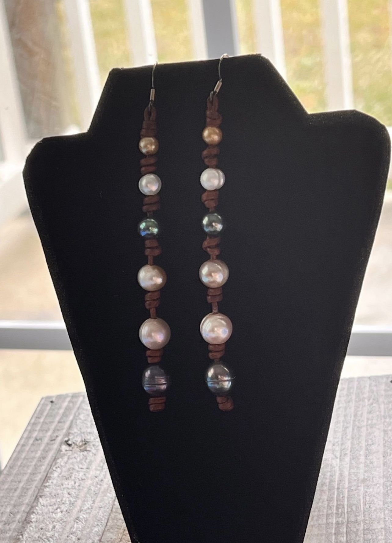 Freshwater Pearl & Leather Earrings