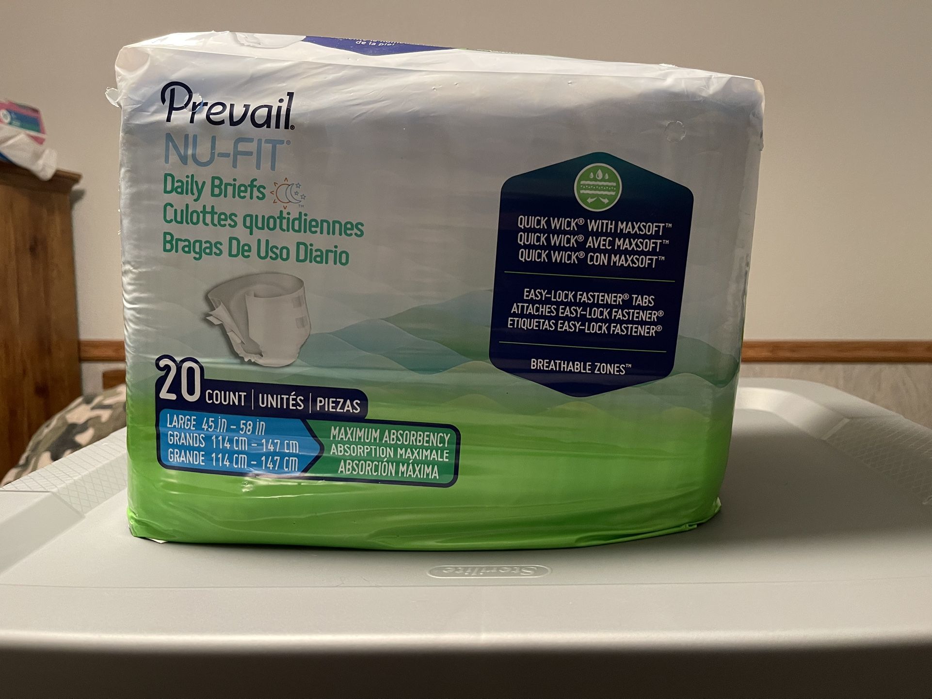 Unopened 4packs per case each pack has 20 adult diapers $15.00 per box total of 80 adult diapers