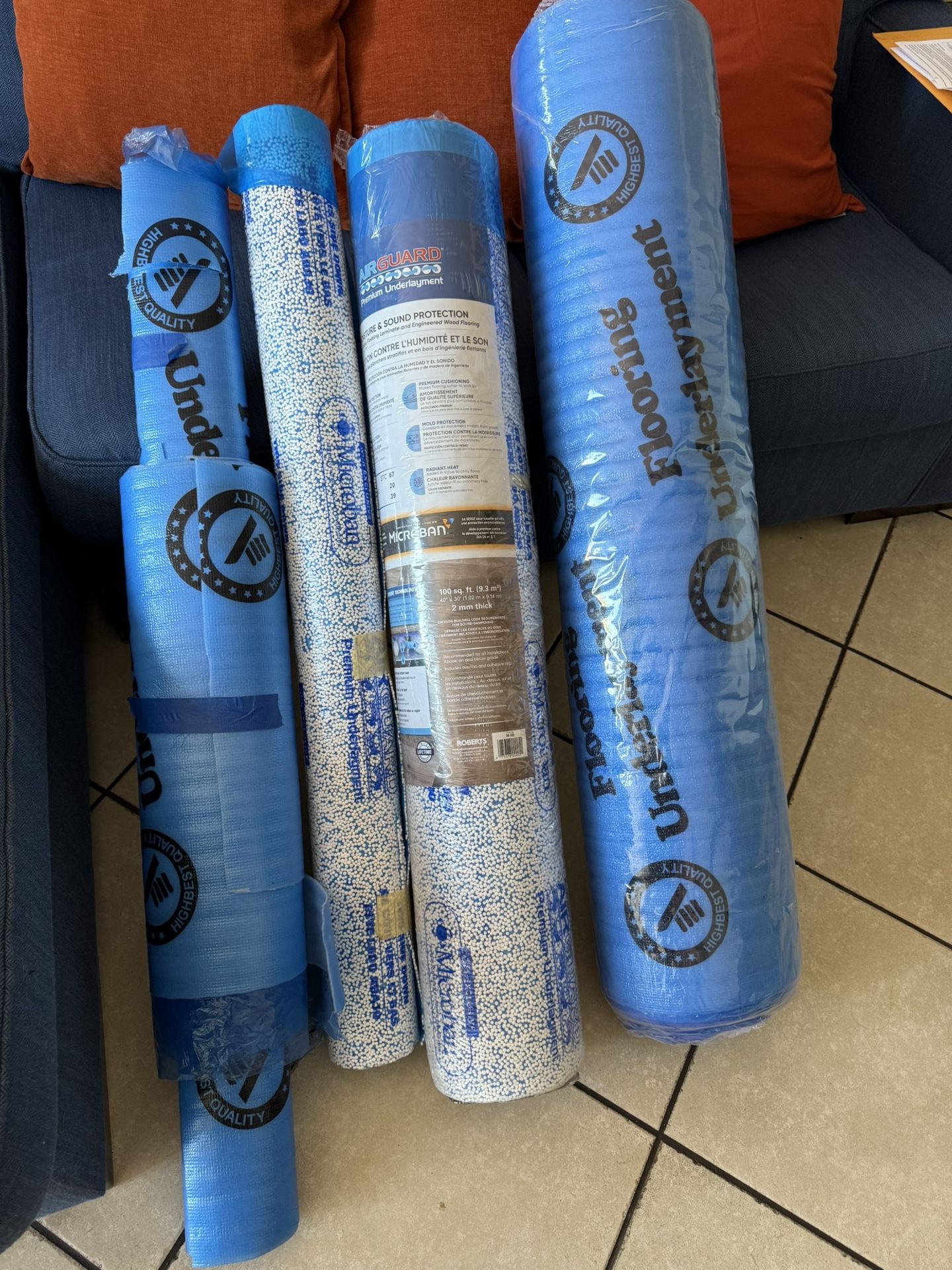 Brand new I have two never opened & 2 used For use under floating laminate and engineered wood flooring 100ft each roll