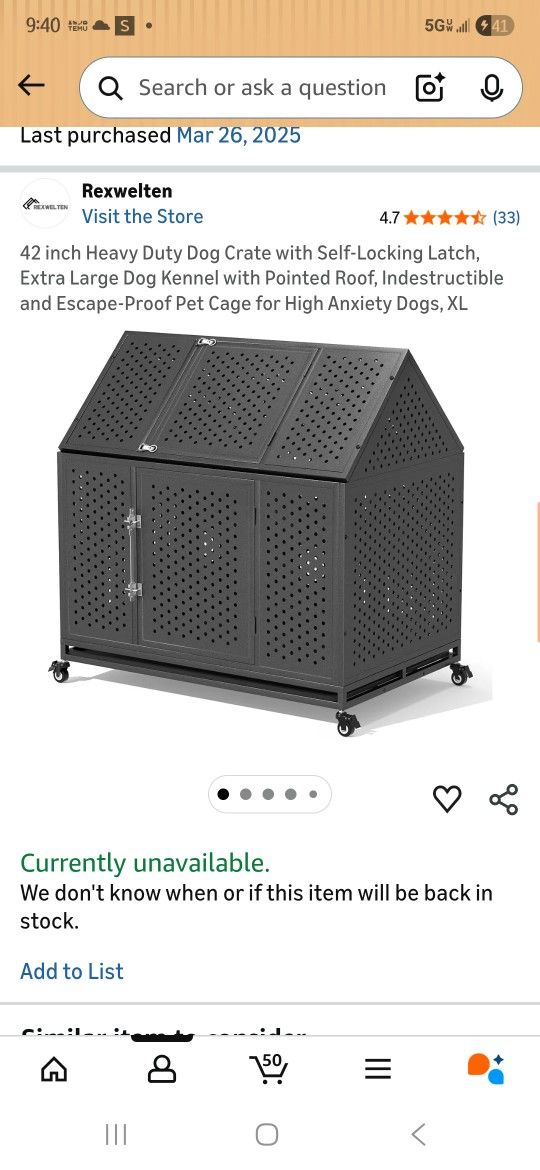 Black Large Size Dog Kennel (Used)