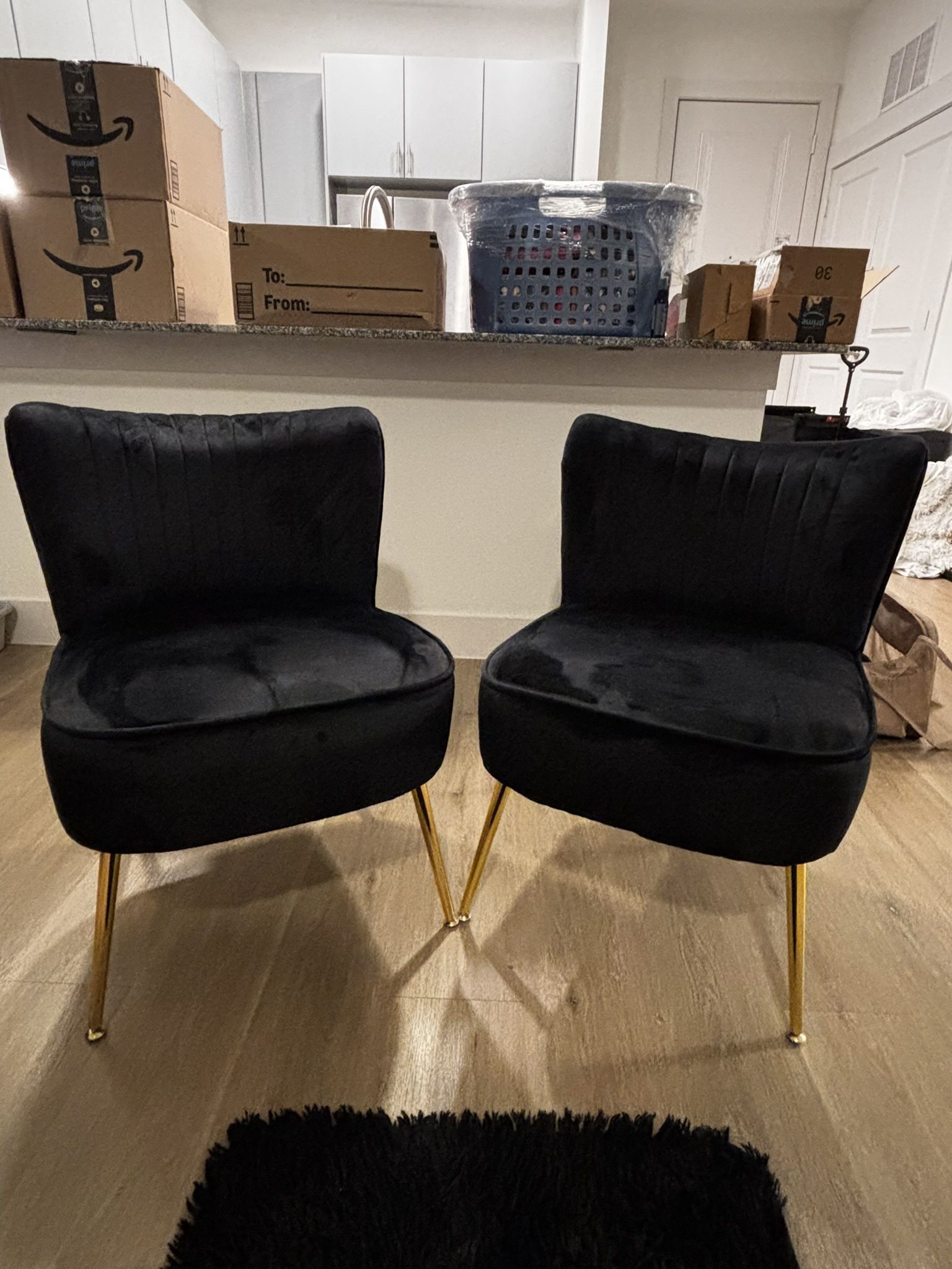 Two black and gold chairs like new. Perfect for a sitting area in your home.
